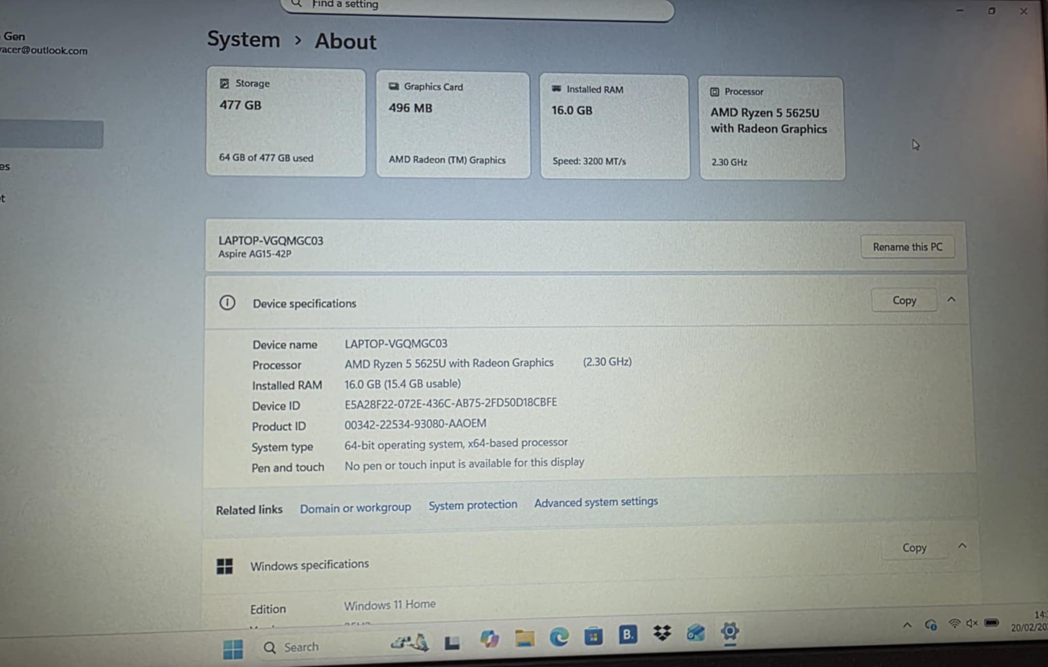 Here we have an Acer Aspire Go 15 Laptop in Pure Silver. ***This features Windows 11, AMD Ryzen 5 5625U processor, 16GB RAM, 512GB SSD, AMD Radeon Graphics and an LCD 15.6" screen. The laptop has 1 UBS-C port, 3 USB ports, 1 aux port, 1 HDMI and 1 ethernet port. ***Comes fully boxed with it's original charger in very good condition. ***For any queries please call our Chorley store direct from Mon-Sat on 01257 752333.