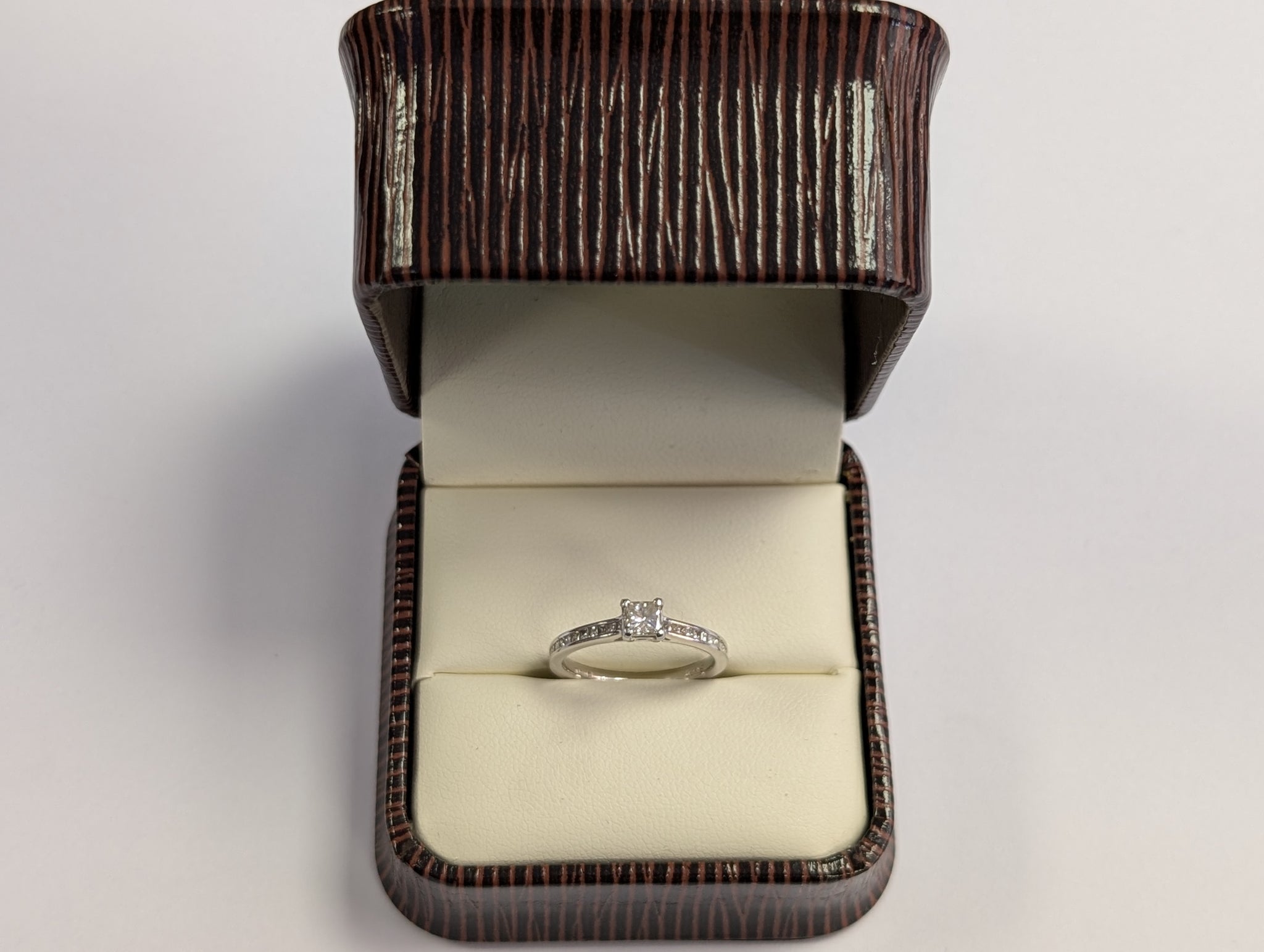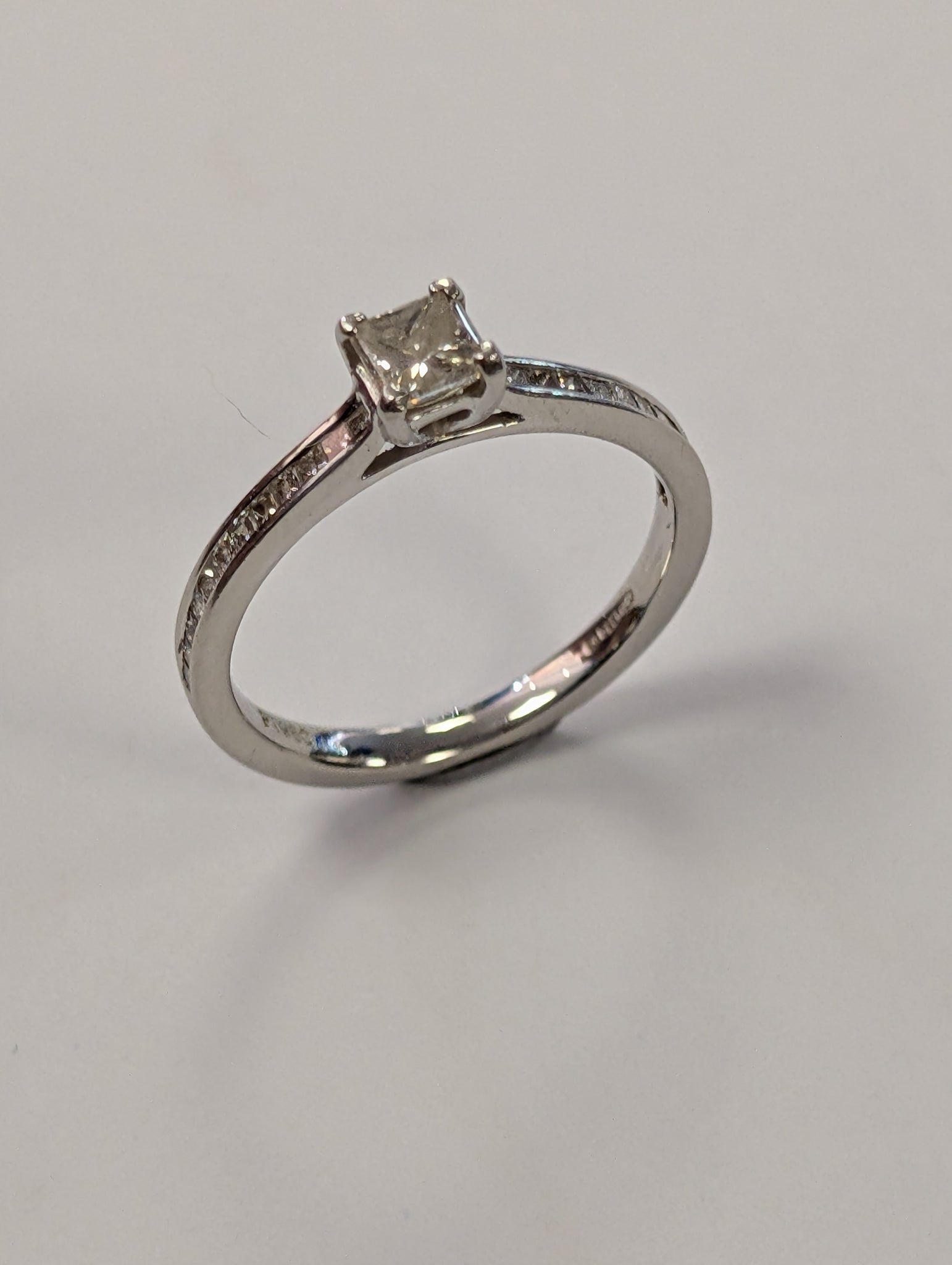 HERE WE HAVE A PLATINUM SQUARE DIAMOND RING. THIS IS A SIZE J 1/2 AND WEIGHS 2.71G ** FOR ANY QUERIES PLEASE CALL OUR CHORLEY STORE DIRECT MON-SAT 01257 752333