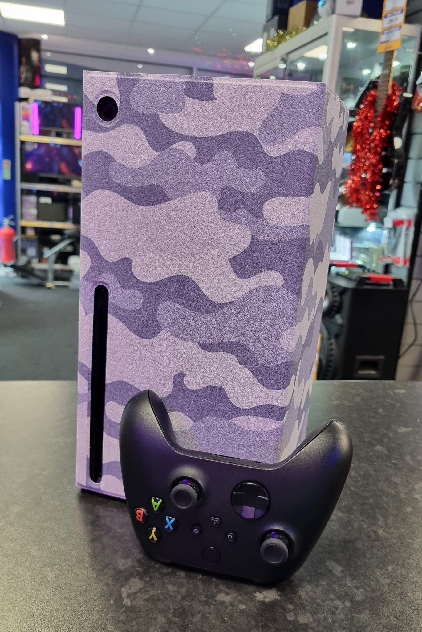 Xbox series x console Comes with a camo sleeve which can be removed . HDMI lead, power lead, cover & black series x wireless controller. Has very light cosmetic marks from general use…. ******************* For more information regarding this item call our store on 01257 752333 open Mon-Sat between 9:30am-5pm