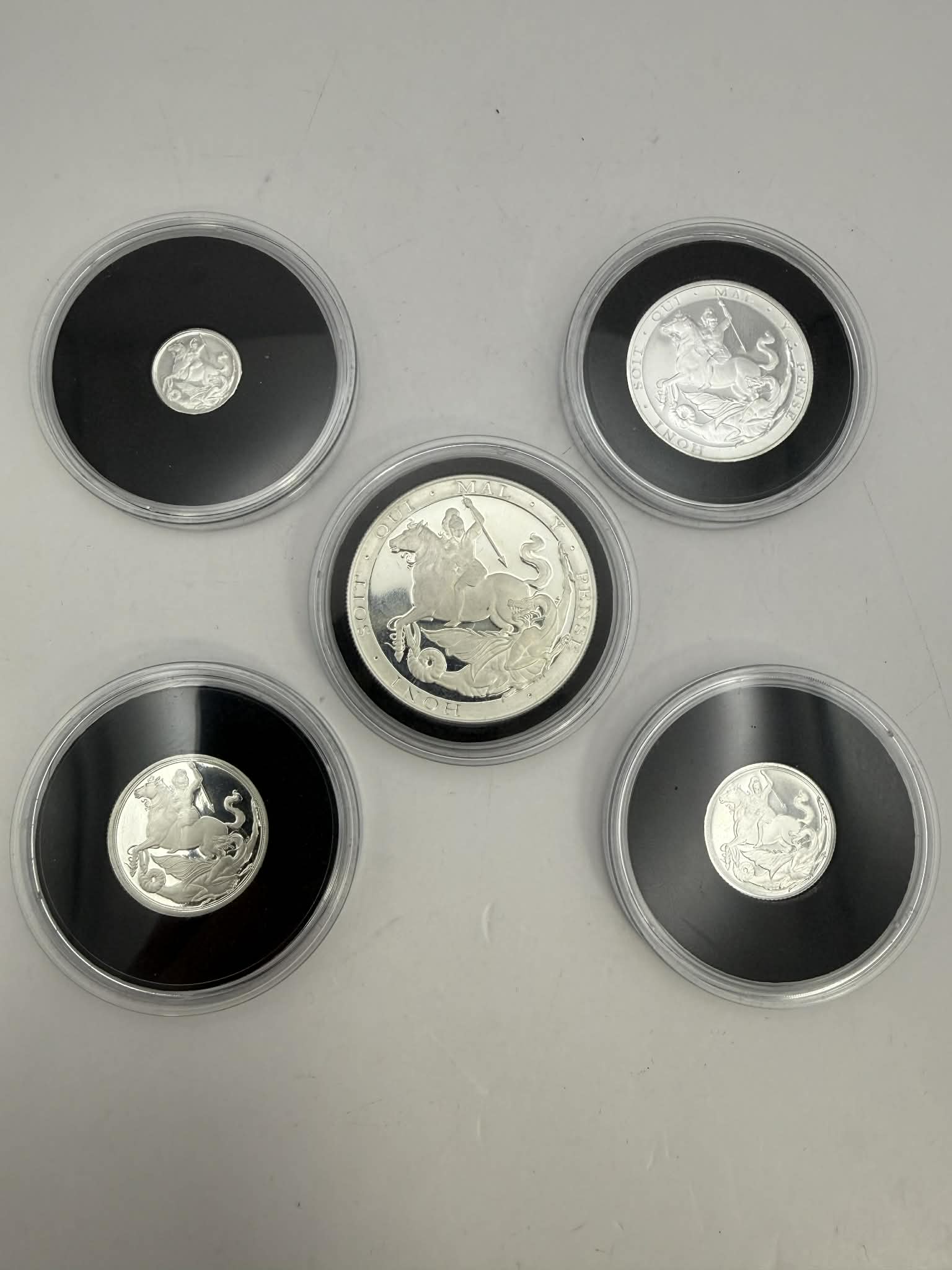 2019 999 Pure Silver, St. George and the Dragon Gibraltar Silver Sovereign Five - Coin Set
