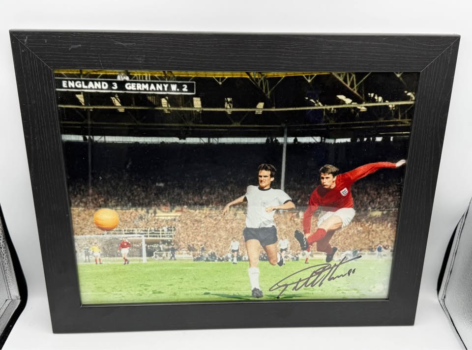 ENGLAND VS GERMANY WORLD CUP 1966 SIR GEOFF HURST SIGNED MEMORABILIA **COLLECTION ONLY**