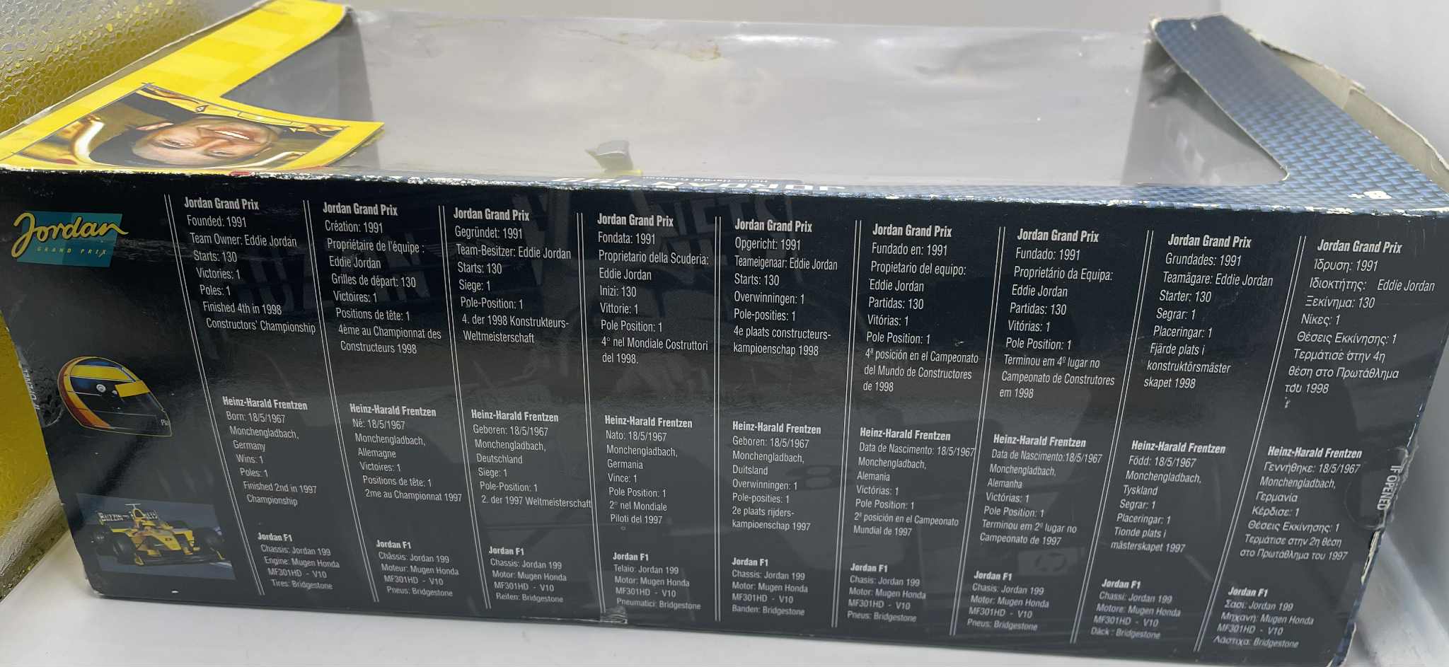 Hot Wheels Jordan 199 Heinz-Harald Frentzen Edition Jordan Grand Prix Box lightly ripped on a side as it is seen in photos Good condition