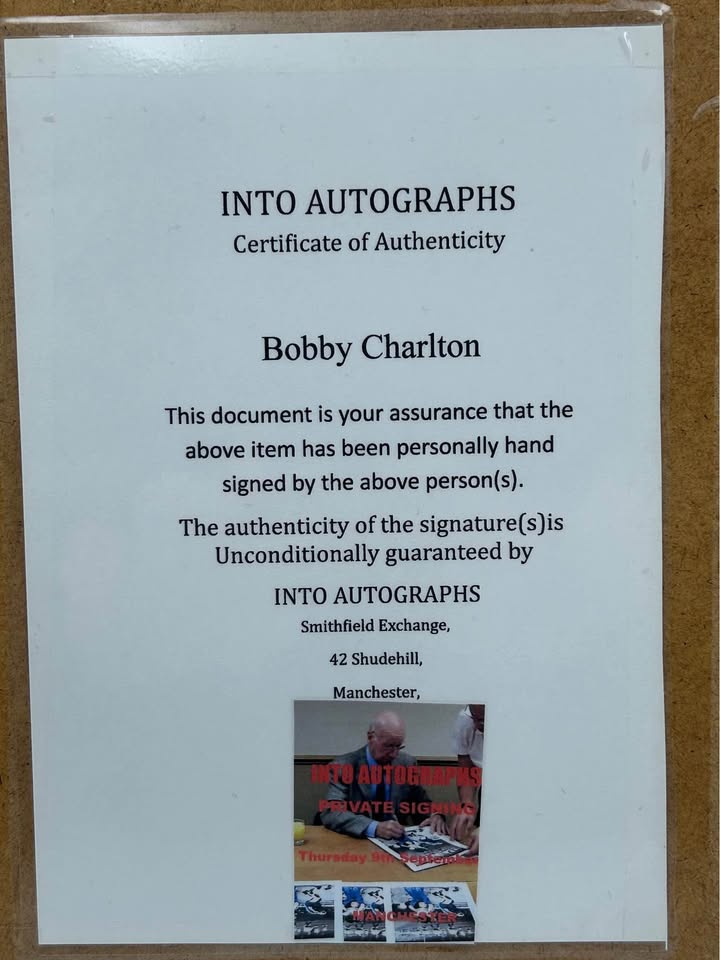 Manchester United FC ‘Sir Bobby Charlton 68 European Cup Winners’ Signed Memorabilia Certificate Of Authentication