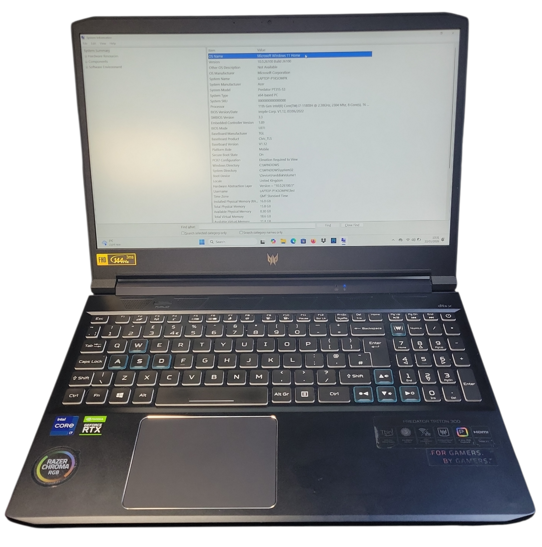 The Acer Predator Triton 300 PT315-53 is a gaming laptop series featuring 11th Gen Intel Core i7-11800H processors, NVIDIA GeForce RTX 30-series GPU 3070, 15.6", FHD (1920x1080) 144Hz displays, 16GB DDR4 RAM, fast PCIe SSDs, Wi-Fi 6, Thunderbolt 4, and a backlit keyboard, all powered by a 230W adapter. Key specs vary by configuration, but generally include Core i7-11800H, RTX 30-series, DDR4-3200 RAM, and fast storage.