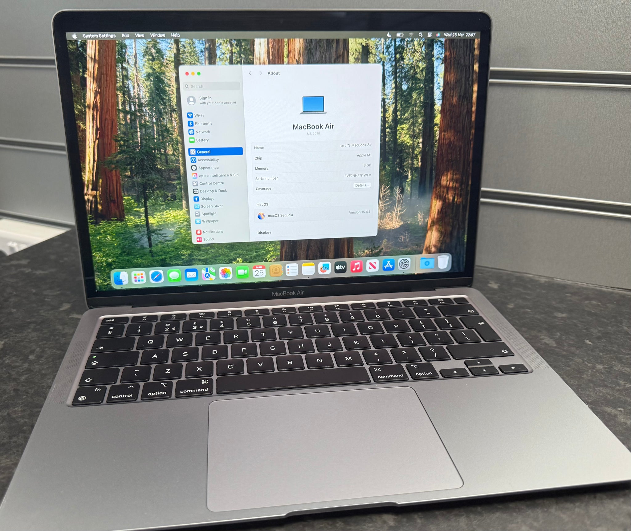 Apple MacBook Air M1 2020. This features the M1 chip, 256gb ssd, 8gb ram and a 13 inch display. This MacBook comes fully reset with the original charger.