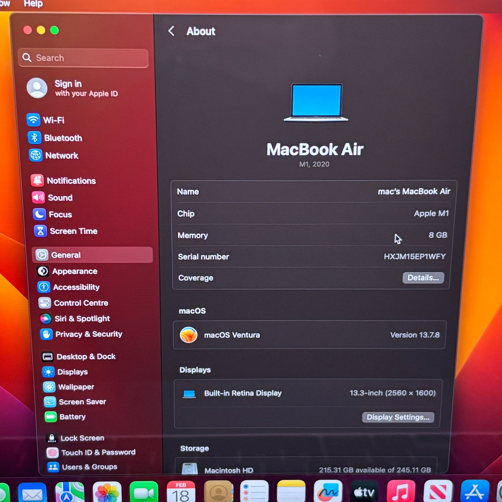 Apple MacBook Air 2020 Model A2337 Apple M1 256GB SSD 8GB RAM Boxed