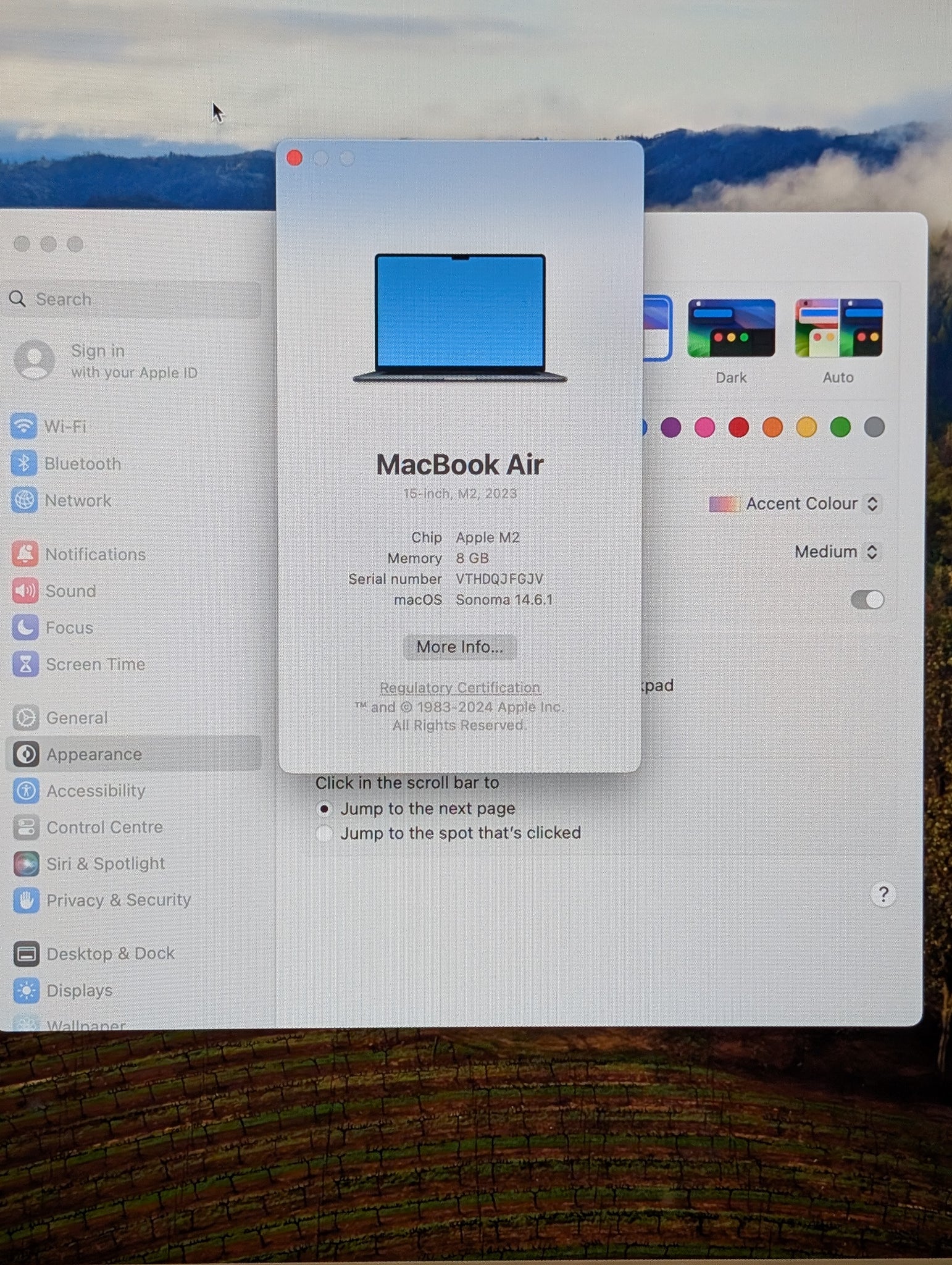 Macbook Air A2941, M2 chip, this laptop is in good condition, this comes unboxed with charging cable included. 8GB ram, Mac os Sonoma 14.6.1, 256GB ssd. Midnight blue. Battery Health is 97% *********** FOR ANY QUERIES PLEASE CALL OUR CHORLEY STORE DIRECT MON-SAT 01257 752 333