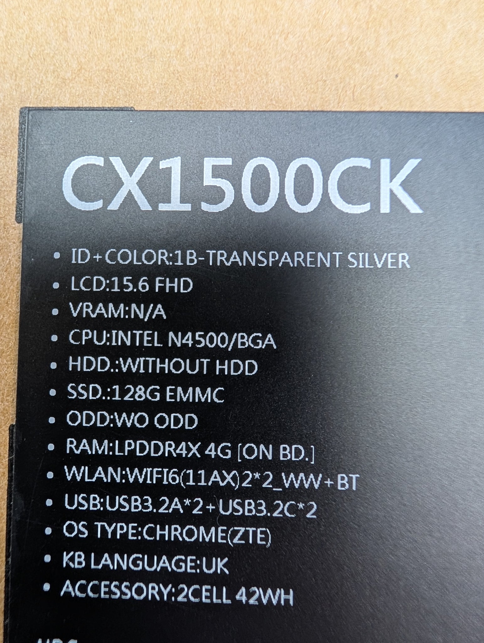 Asus Chromebook 15.6FHD Cx1500ck Laptop Boxed