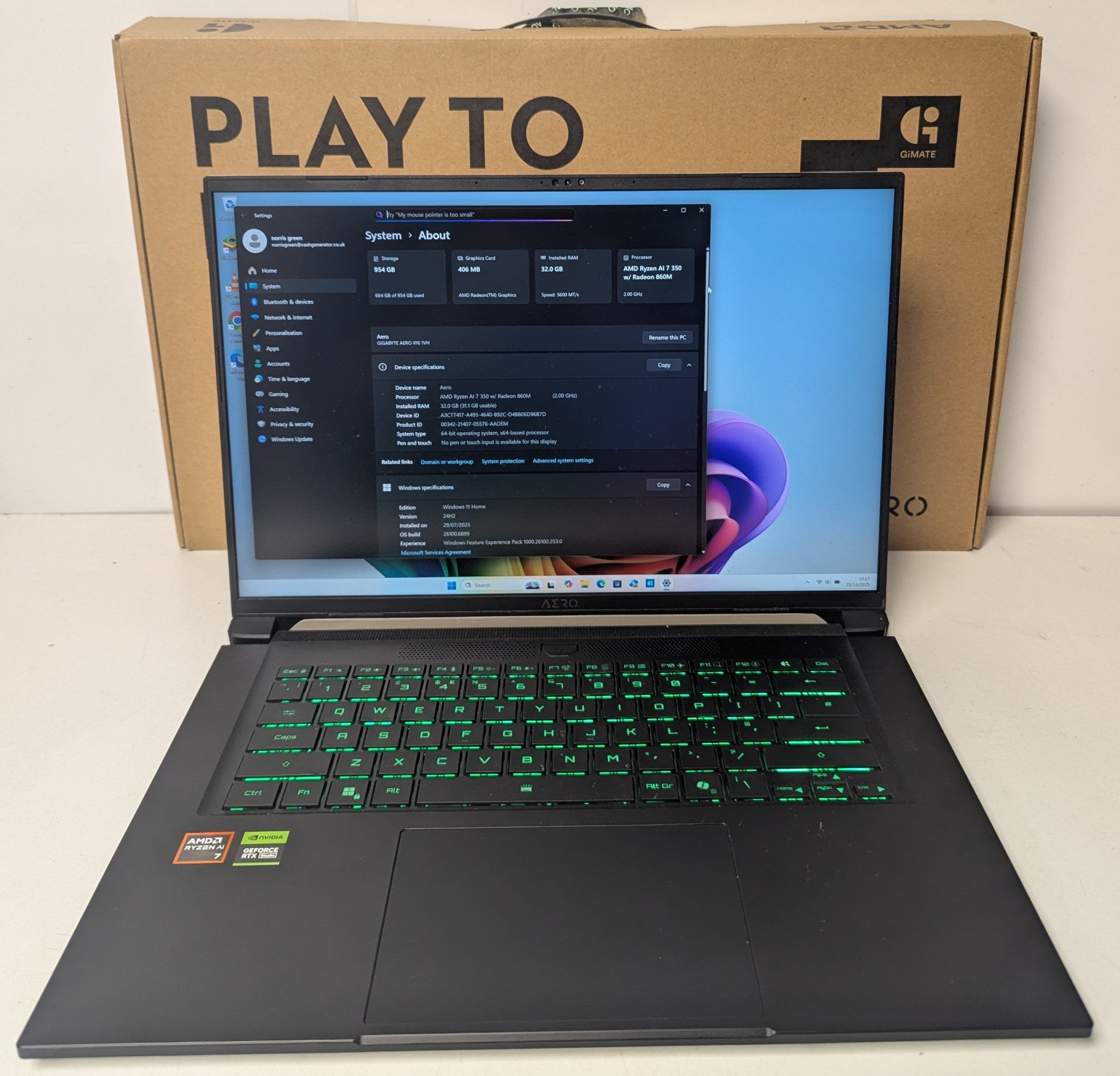 GIGABYTE AERO X16 16" Gaming Laptop - AMD Ryzen AI 7, RTX 5060, 1 TB SSD