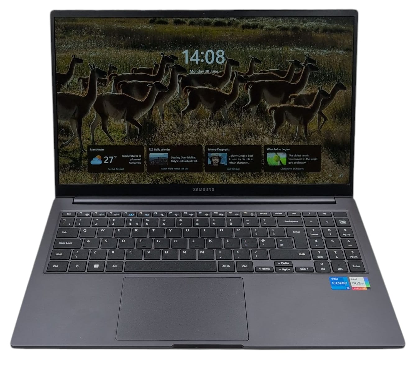 Samsung Galaxy Book3 Laptop Specs: Intel Core i5 Processor. Windows 11 Home Operating System. 8GB RAM. 256GB SSD. Intel Iris Xe Graphics. 15.6 Inch Screen.