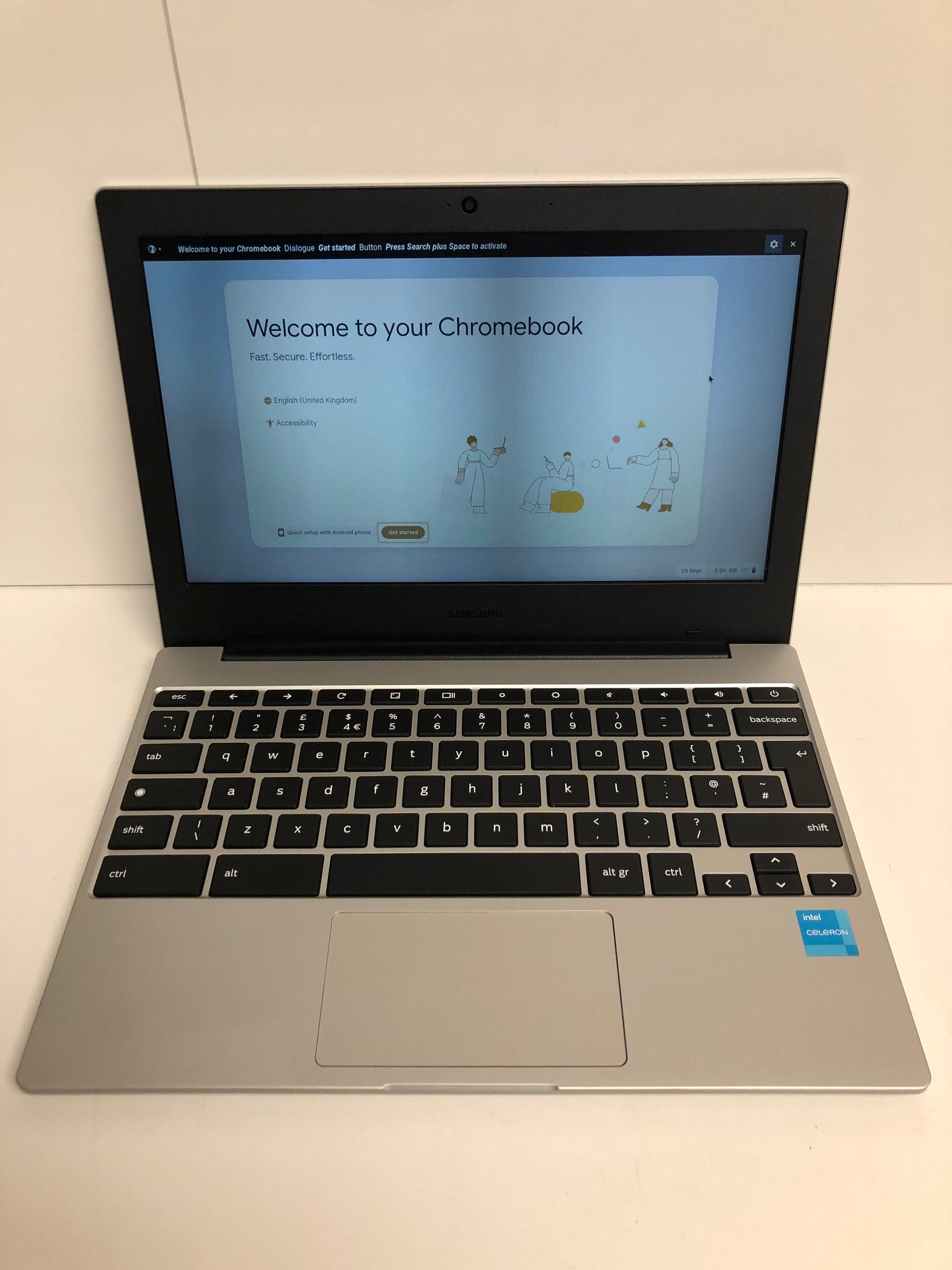 Take it wherever learning takes you Featuring a slim design, Galaxy Chromebook Go makes for a perfect fit for on-the-go learners. Made for mobility, in a timeless silver hue, it's ready to go wherever learning takes you. Tough enough to take knocks, drops and spills Having passed several of the MIL-STD-810G tests, Galaxy Chromebook Go pushes learning forward however tough the environment gets. Sturdy and shock-resistant, with reliable features like the spill-resistant keyboard, it is built to last and protect in classrooms and beyond. 180° hinge for all-round teamwork Sharing e-books, digital handouts and creative learning apps is made easy, with the help of Galaxy Chromebook Go's 180-degree hinge allowing for screen viewing from multiple vantage points. View, connect and learn from anywhere With Galaxy Chromebook Go, downloading, streaming, checking email and remote learning can be done while on the move. Study and play wherever your day takes you, with its always-on 4G LTE connection. Stay learning-ready anytime, anywhere. Power through study, play and everything in between Even a full day of classes is no problem with Galaxy Chromebook Go's battery life lasting up to 12 hours on a single charge. You can conveniently charge up other Galaxy devices such as a mobile phone and tablet with the universal USB-C charger provided with the device. More ports, more possibilities Galaxy Chromebook Go's powerful, versatile ports – including the USB Type-C, USB 3.2, SIM card tray, earjack and memory card slot – are set to bridge learning and technology in a changing world. With more ports, you can expand multimedia uses, extend and add screens, use additional data storage and much more.