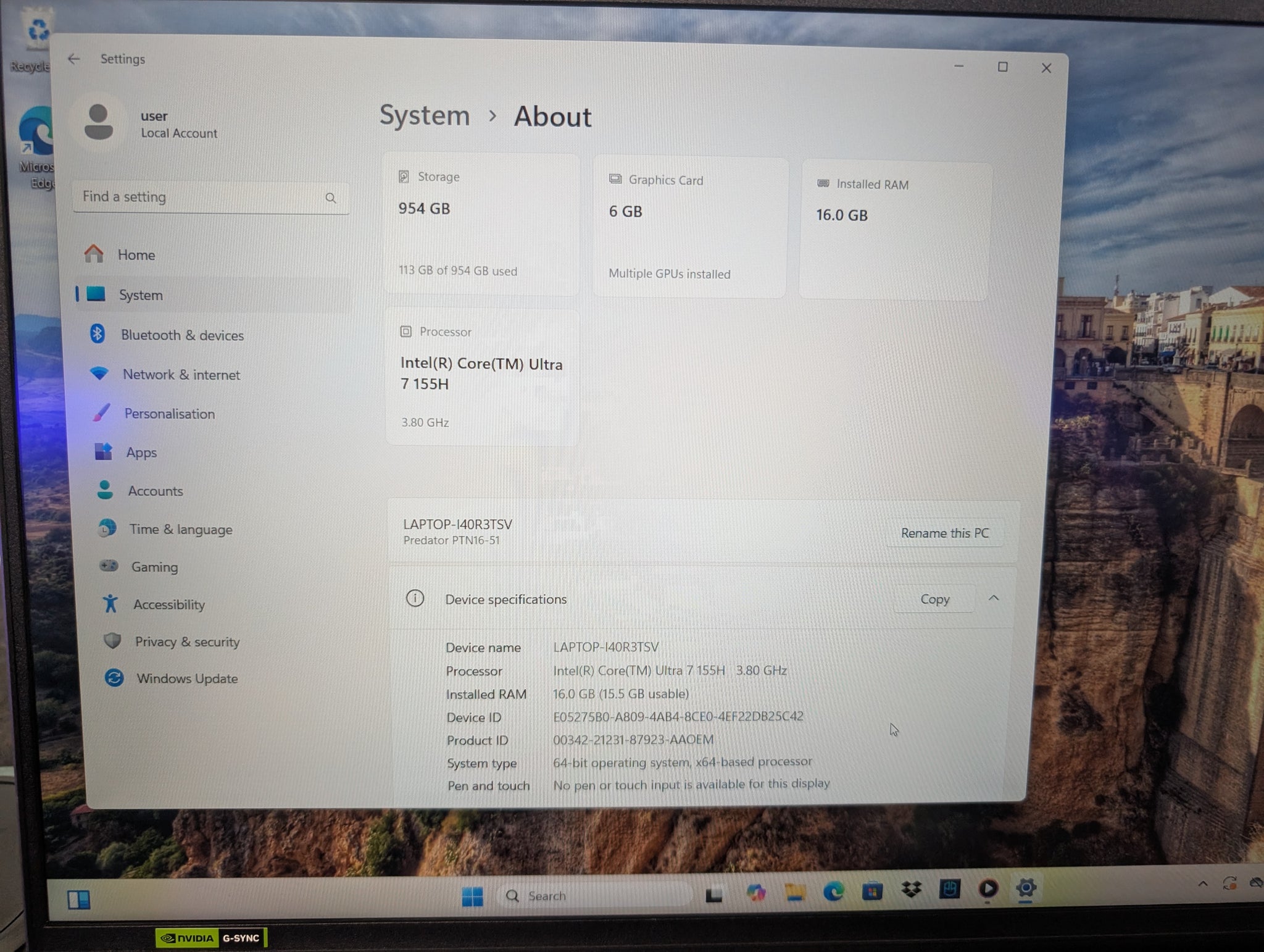 HERE WE HAVE A ACER PREDATOR TRITON NEO 16 GAMING LAPTOP WITH CHARGER. THIS COMES FACTORY RESET AND UNBOXED IN VERY GOOD CONDITION. FEATURES.... WINDOWS 11 NVIDIA RTX 4050 GRAPHICS CARD 16GB RAM 1TB SSD INTEL CORE ULTRA 7 PROCESSOR *** FOR ANY QUERIES PLEASE CALL OUR CHORLEY STORE DIRECT MON-SAT 01257 752333