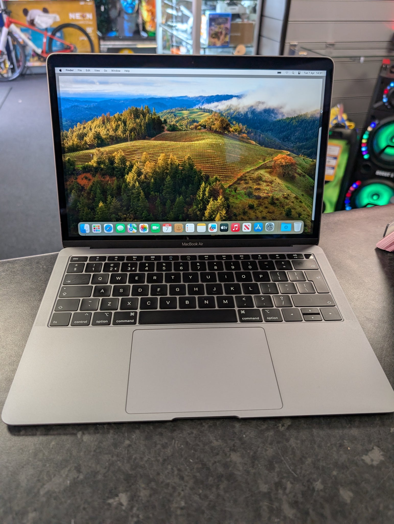 HERE WE HAVE AN APPLE MACBOOK AIR 2018 A1932. THIS COMES FACTORY RESET ABD UNBOXED WITH A REPLACEMENT CHARGER. THIS FEATURES A i5 PROCESSOR,8GB RAM ABD 128GB SSD THERE IS A LITTLE COSMETIC WEAR ON THE CASE LID FROM GENERAL USE. ** FOR ANY QUERIES PLEASE CALL OUR CHORLEY STORE DIRECT MON-SAT 01257 752333