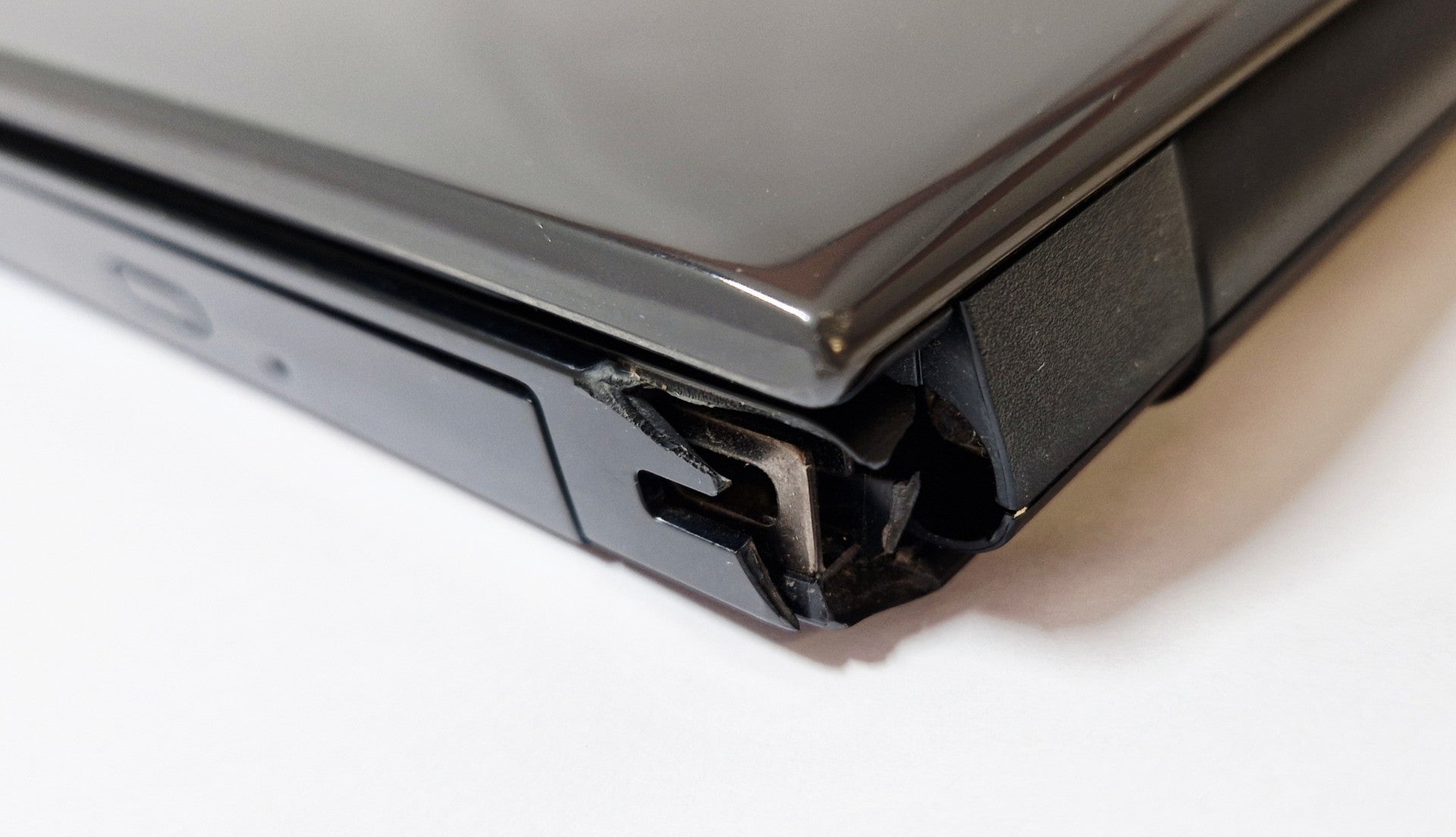 THERE IS DAMAGE TO ONE OF THE HINGE CASINGS (PICTURED) THIS HAS NOT EFFECTED THE HINGE ITSELF FROM FUNCTIONING.