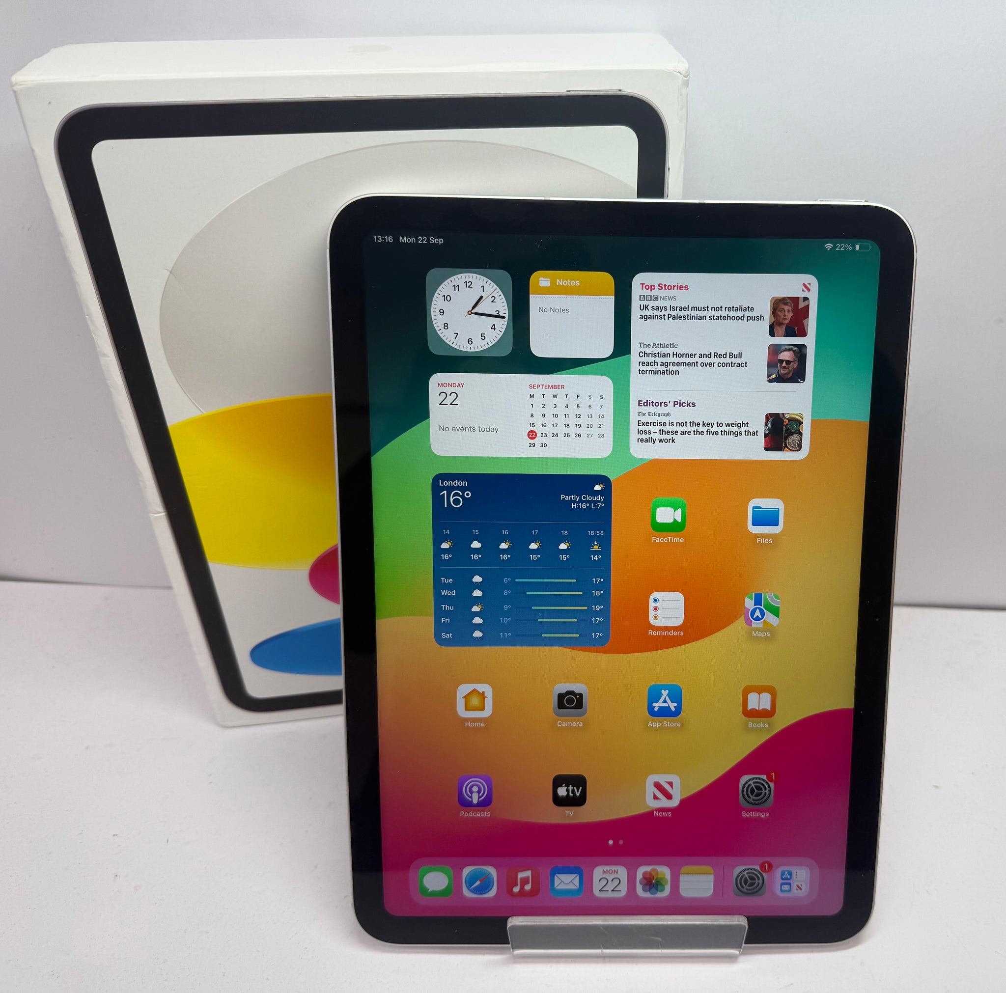 This fast apple ipad 10th gen is in good condition, has 64gb storage and unlocked to any network, comes boxed and has been fully tested, factory reset and ready to use.