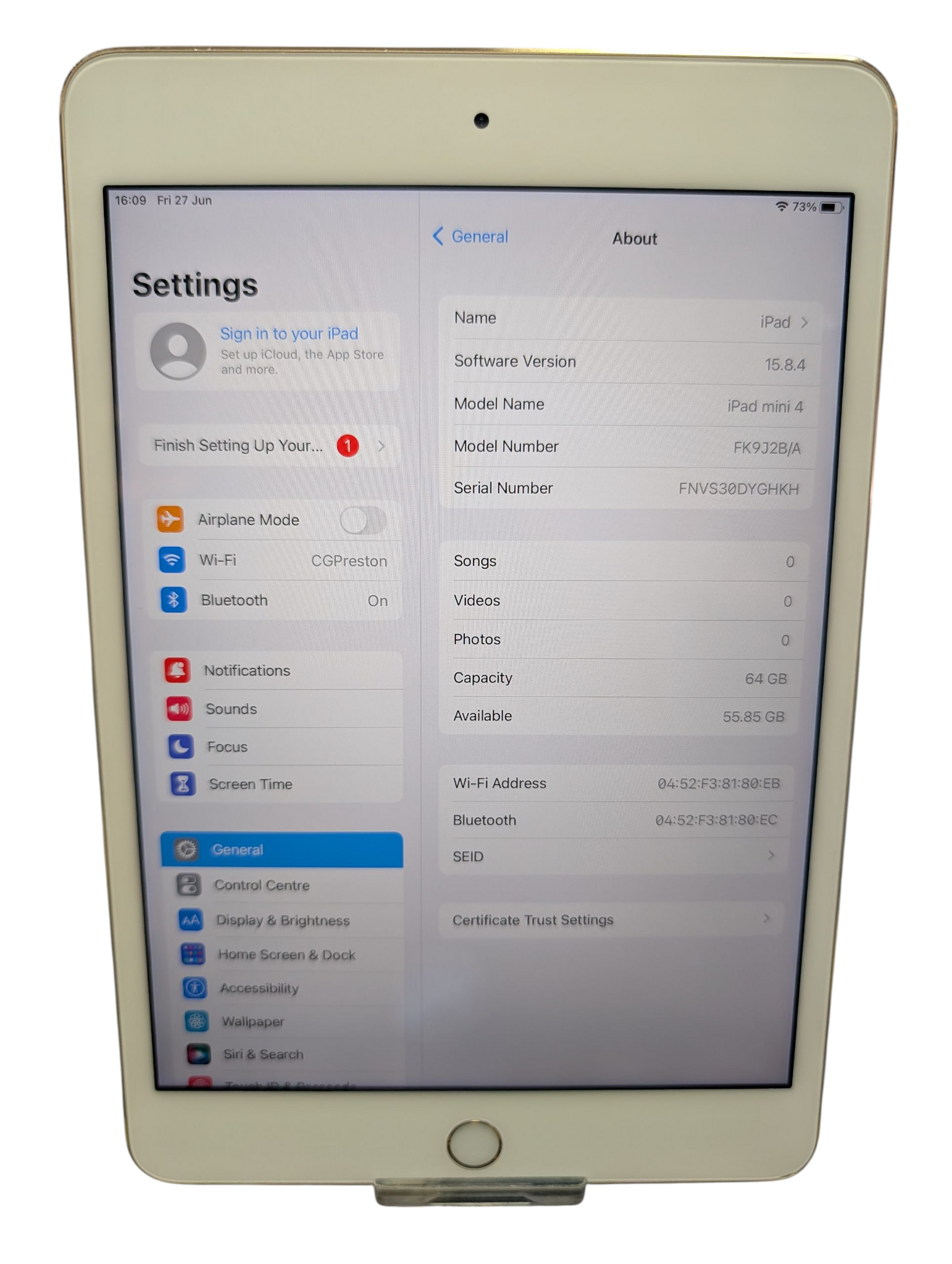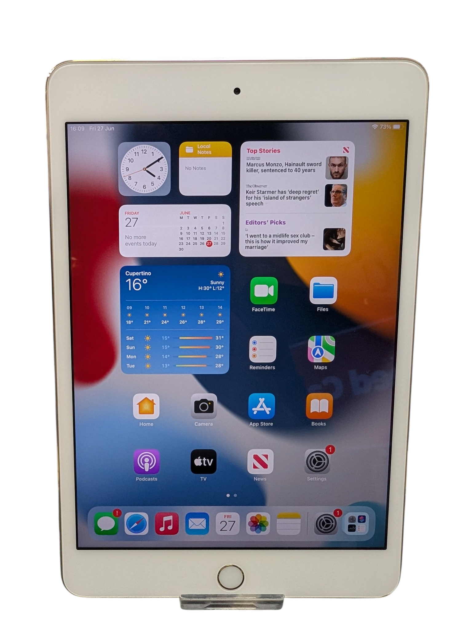 Here we have an Apple iPad Mini 4 with 64gb memory in gold. This comes fully working and has been restored to factory settings. This comes with a charger and is unboxed. Model A1538. *** For any queries please call our Preston store direct Mon-Sat 01772 204889.