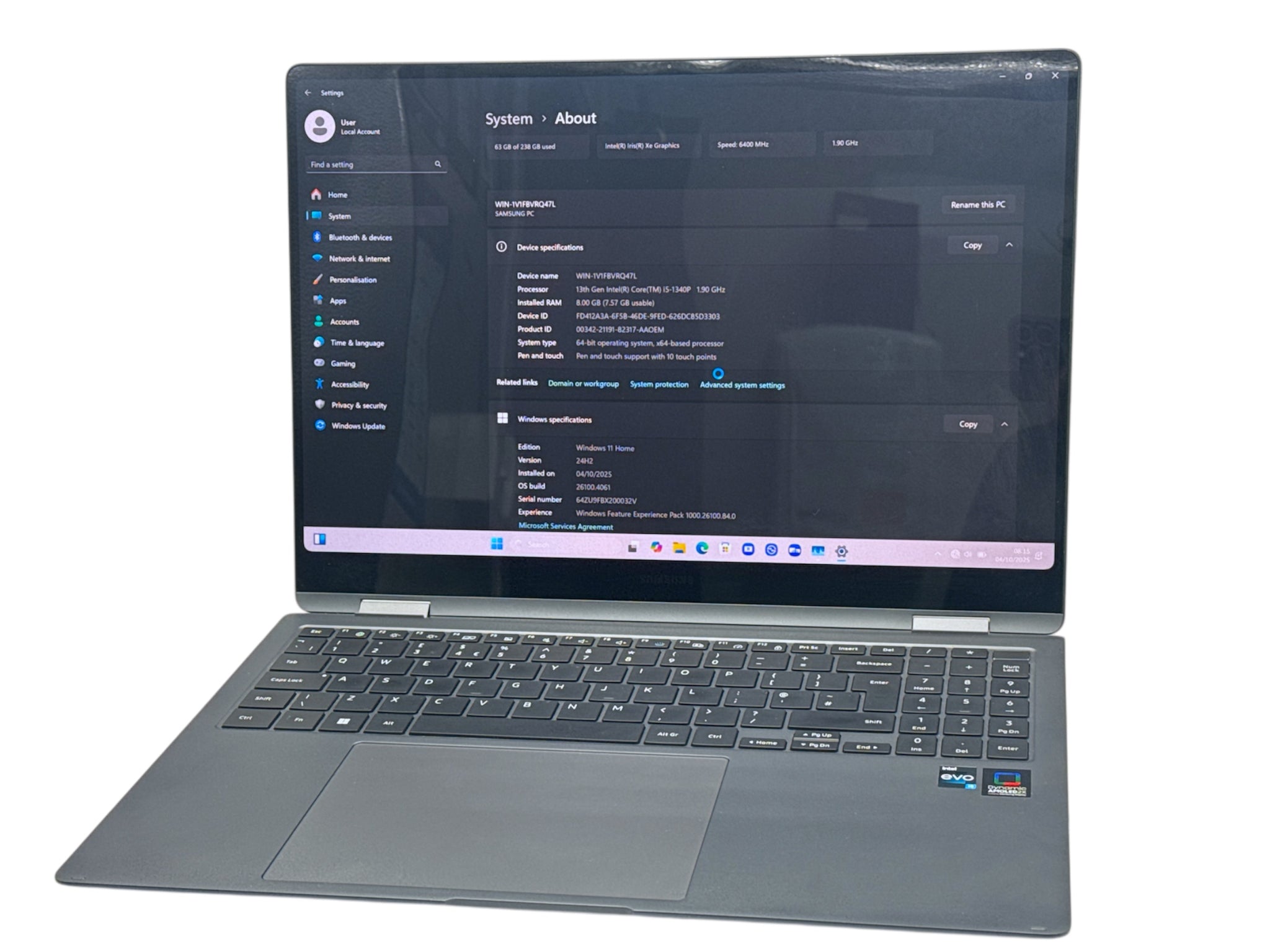 Dual design. Twice the productivity,FHD Super AMOLED touchscreen display,Next-level performance with 13th Gen Intel Core ,Long lasting battery, compact charger. Weighing just under 1.2kg, Galaxy Book3 360 13" delivers an intuitive 2-in-1 hybrid experience in lightweight form. Use as a powerful laptop or flip into tablet mode to take full advantage of the touchscreen. Unlock your creativity with the fast and accurate S Pen. Turn your bright ideas into inspiring content — simply flip the screen, grab the S Pen and jot down ideas, sketch, draw and fine-tune photos and videos with incredible precision. Stay powered through your projects with a long-lasting battery. Then, take a power nap as your laptop charges up in a flash — with a light and compact charger that even works with your other Galaxy devices. Complete your entertainment experience with the depth and clarity of the dual-speaker audio system. Tuned with Dolby Atmos, the stereo speakers level up your content with stunning sound detail. Go from editing creative projects to enjoying and sharing content with the super-fast speeds of Wi-Fi 6E, or hook up to your phone's connection easily via Instant Hotspot to use its data network instead. Processor-intel Core i5 1340P@1.90GHz RAM-8GB Screen Size-15.6 Screen Type-LED Storage-256GB Storage Type-SSD Operating System-Windows 11