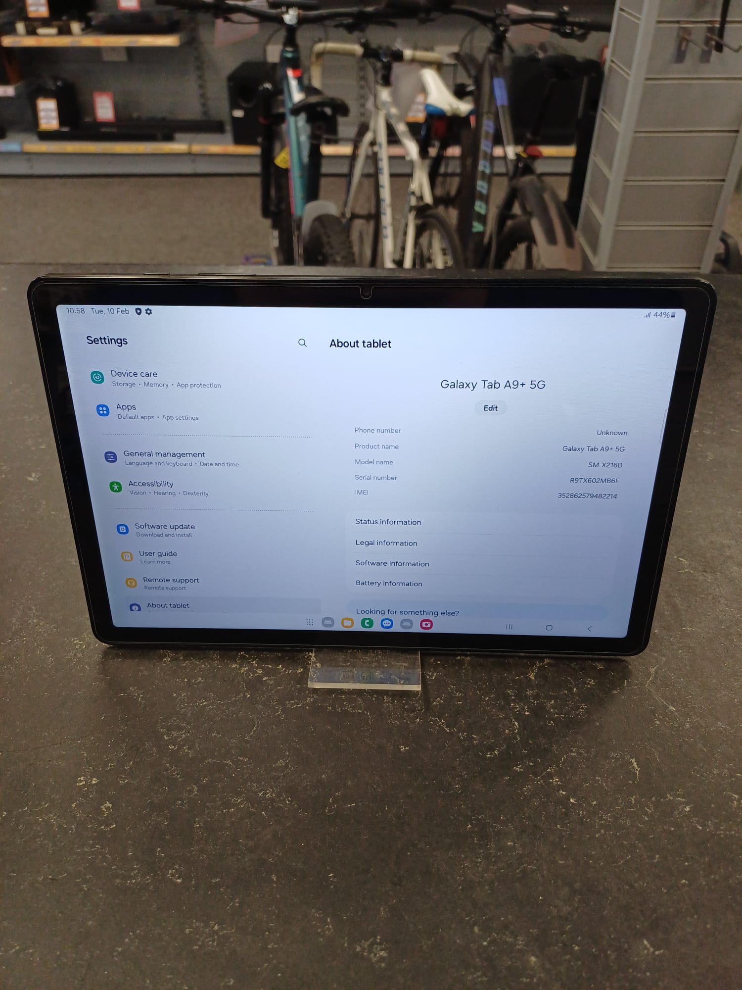 Samsung Galaxy Tab A9+ 5G 📱 Experience seamless connectivity and entertainment with the Samsung Galaxy Tab A9+ 5G. This sleek tablet boasts an 11-inch display with a smooth 90Hz refresh rate, perfect for streaming and gaming. With 5G capabilities, you'll enjoy lag-free browsing and downloads Key Features: - Display: 11-inch WUXGA TFT LCD with 90Hz refresh rate - Performance: Octa-core Snapdragon 695 5G processor - Camera: 8MP rear camera and 5MP front camera - Battery: 7040mAh with 15W wired charging - Audio: Quad speakers with Dolby Atmos Design and Connectivity: - Thin and light design (6.9mm, 491g) - USB-C port, Wi-Fi 5, Bluetooth 5.1, and 5G support - Available in Graphite, Silver, and Navy
