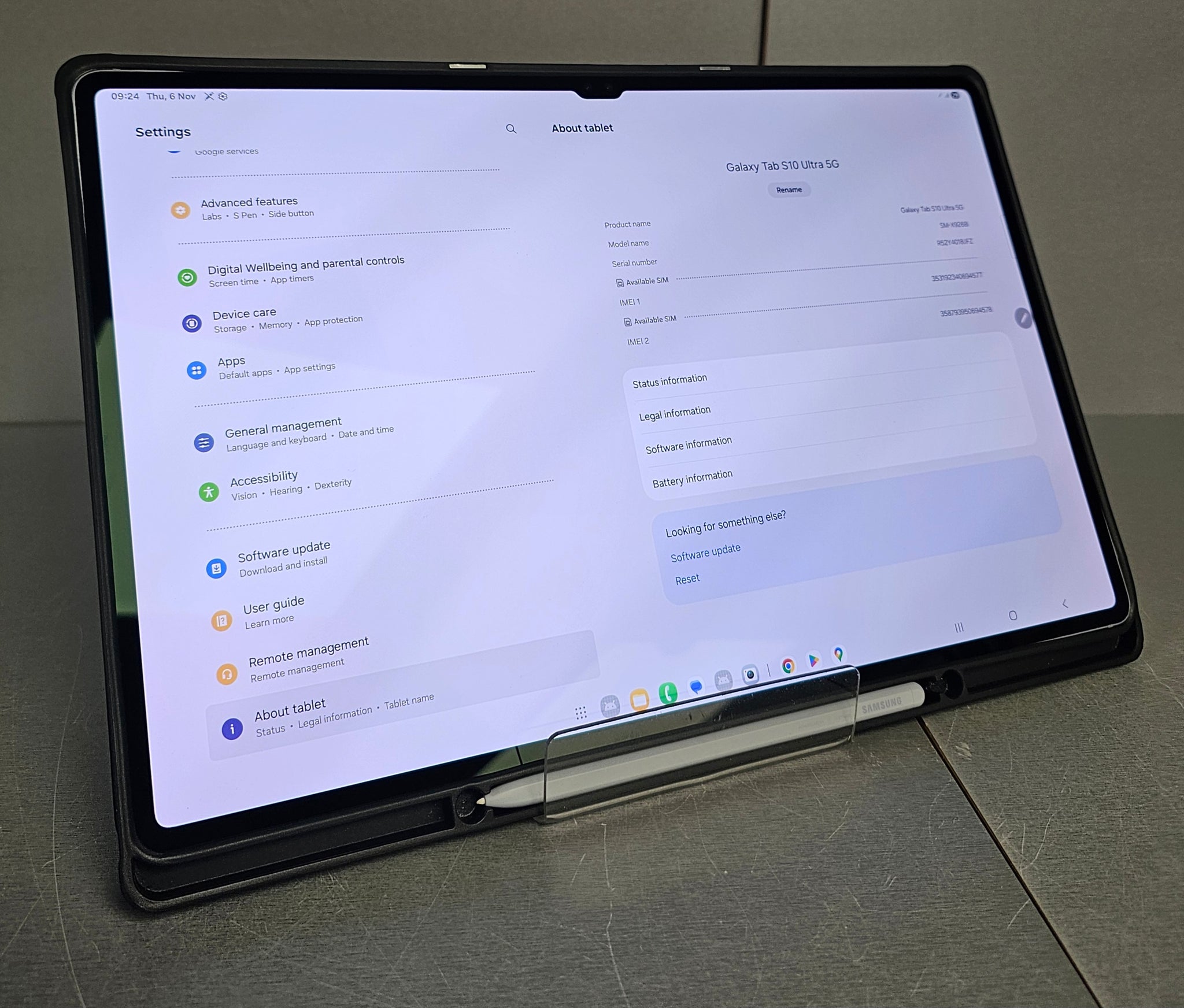 Product information There's big, and then there's the Galaxy Tab S10 Ultra. The massive 14.6" Dynamic AMOLED 2X display lets you work, game, and stream in style. It's a real looker too, with a 3K resolution and 120 Hz refresh rate. Such an epic canvas needs a proper brush. And the included S Pen lets you scribble straight onto the screen. If you need help bringing your ideas to life, there's always Sketch to Image. It uses AI to turn your drawings into digital masterpieces. Talk about state of the art! Good to know - Built-in Galaxy AI can help with anything from quick queries to big projects - Stuck on homework? Math Assist will solve any handwritten equations for you (just don't tell the teacher) - Jot down notes with the S Pen, and Note Assist will instantly turn them into text - Look sharp in every shot and video with the 12 MP rear camera and 13 MP front camera - The 120 Hz refresh rate makes gaming, swiping, and streaming look and feel extra smooth - AKG-tuned quad speakers with Dolby Atmos pump out rich and punchy audio - It's IP68 water-resistant, so if it takes a quick dip, you don't have to panic - You won't lose the S Pen anytime soon - it snaps straight onto the back of your tablet - A beefy MediaTek Dimensity 9300+ processor lets you game, browse, and use AI without a hitch