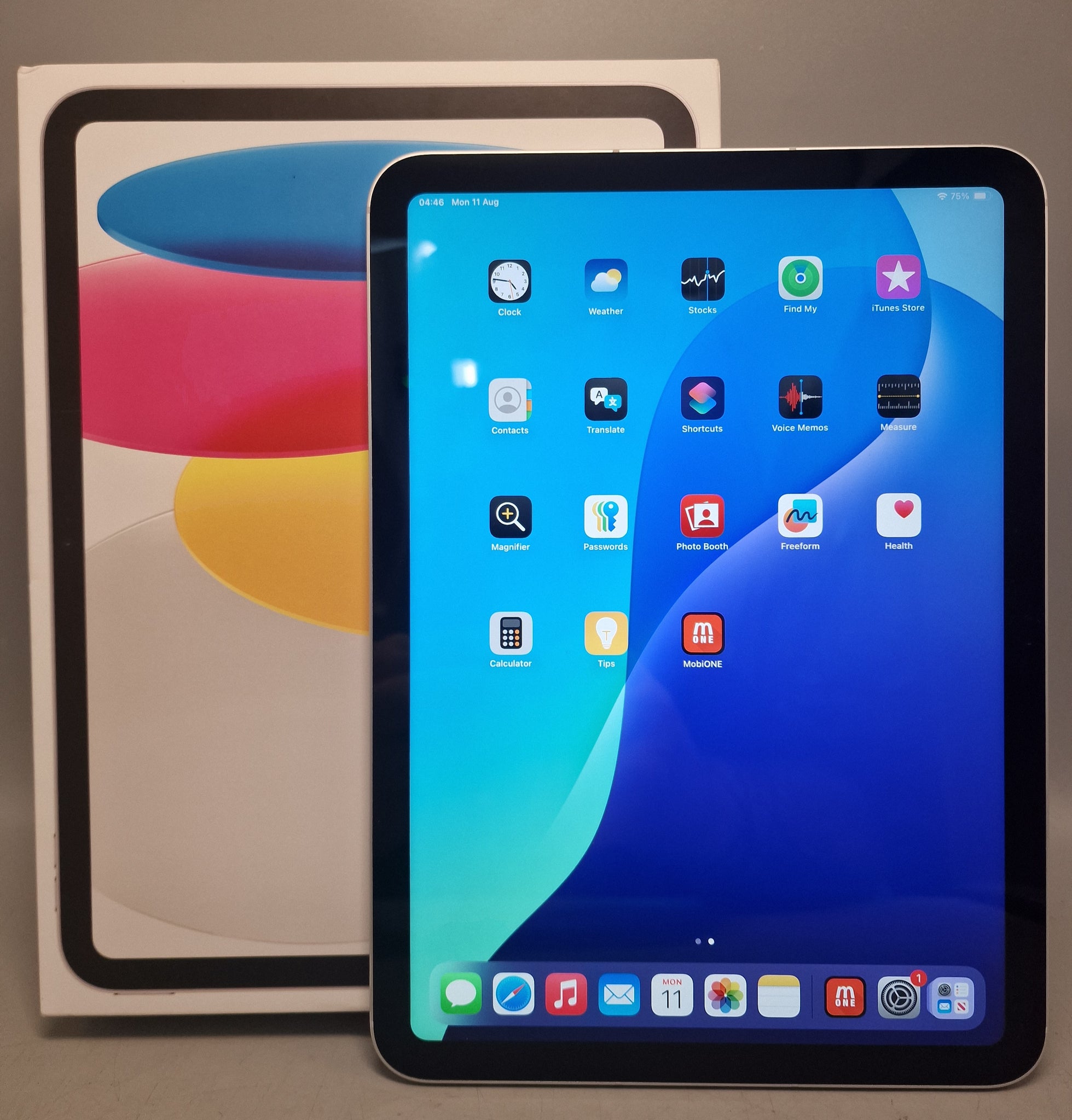 Apple iPad 10th Gen (A2757) 10.9" 64GB - Silver, Unlocked BOXED WIFI and CELLULAR item is in very good clean working condition it has a very small faint light scratch in the top right hand corner very missable if not looking for it please see pictures however the camera couldn't really pick it up Charge cable included 100% BATTERY HEALTH