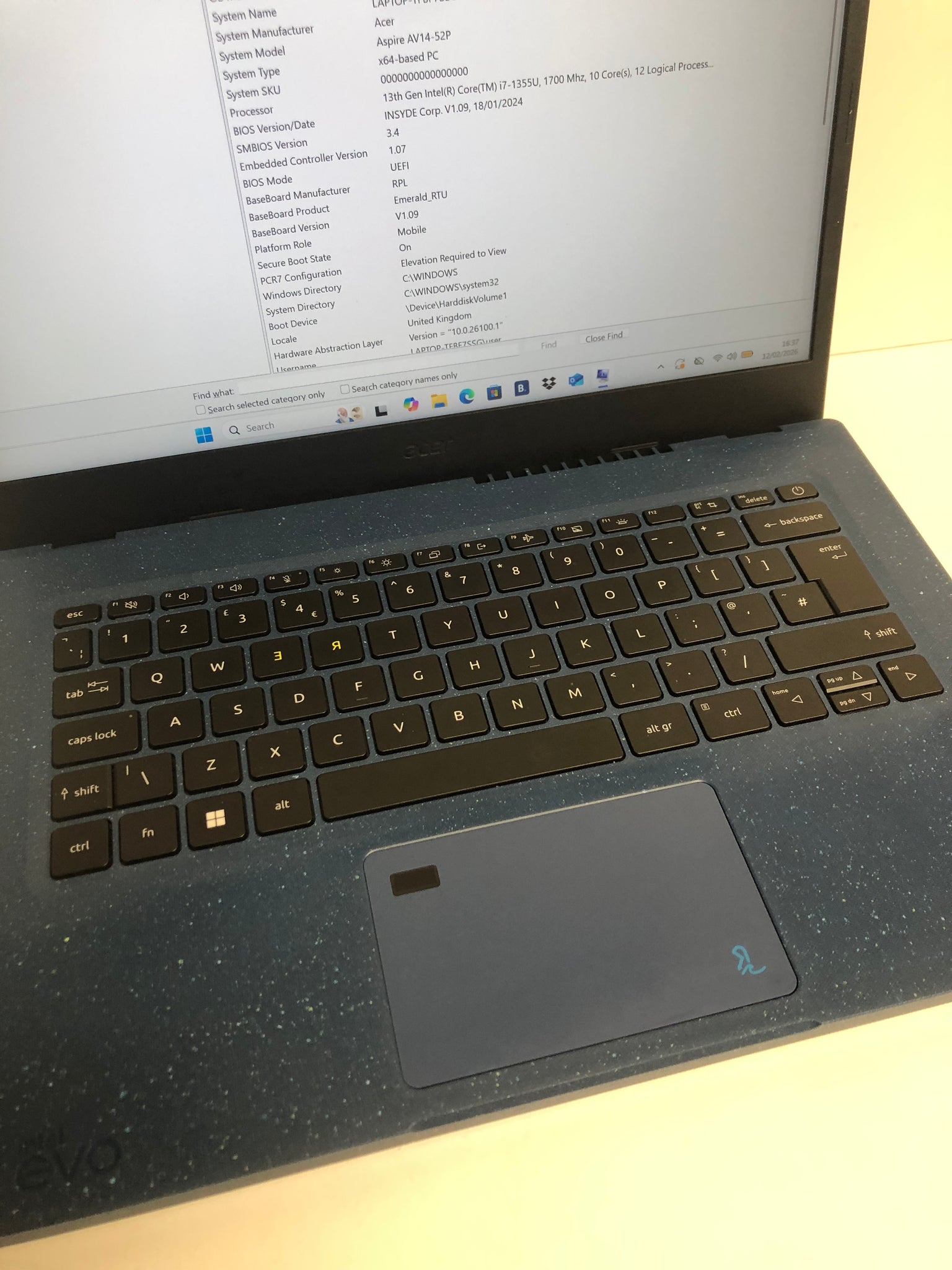 Acer Aspire Vero 14-inch (2023) - Core i7-1355U - 16GB - SSD 1 TB QWERTY - English