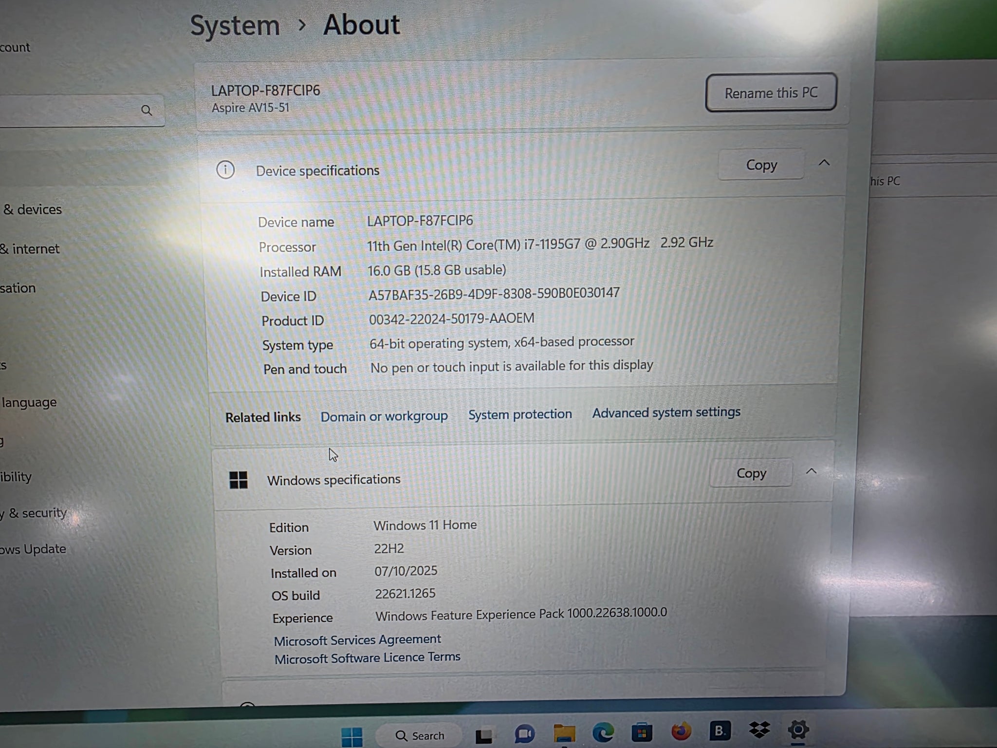 Acer Aspire Vero Laptop - intel I7 11th Gen