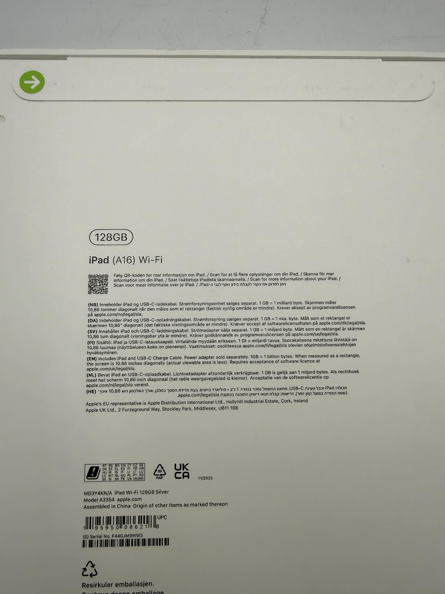 APPLE IPAD A16 (2025), 128GB, WIFI ONLY, BOXED **BRAND NEW SEALED NEVER OPENED**