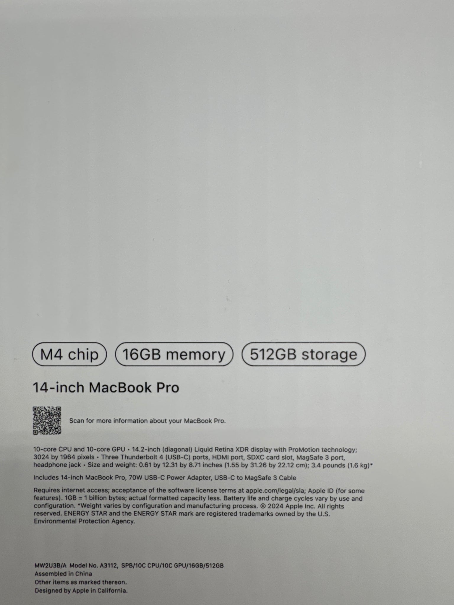 Never used or set up only opened to check. M4 chip 16gb ram 512ssd