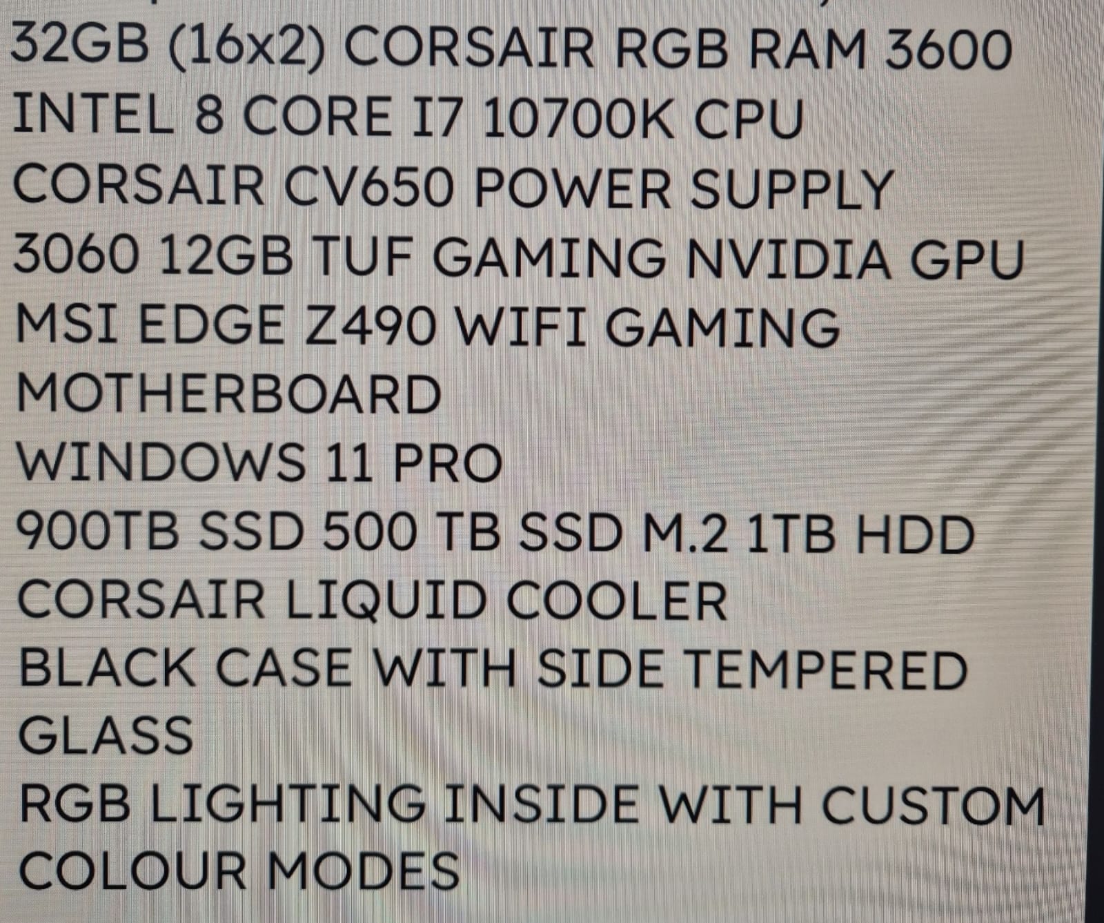 Custom Built Gaming PC - 1.4TB SSD - 1TB HDD - CORE I7-10700K CPU - 32GB - 3060 12GB TUF GAMING NVIDIA GPU