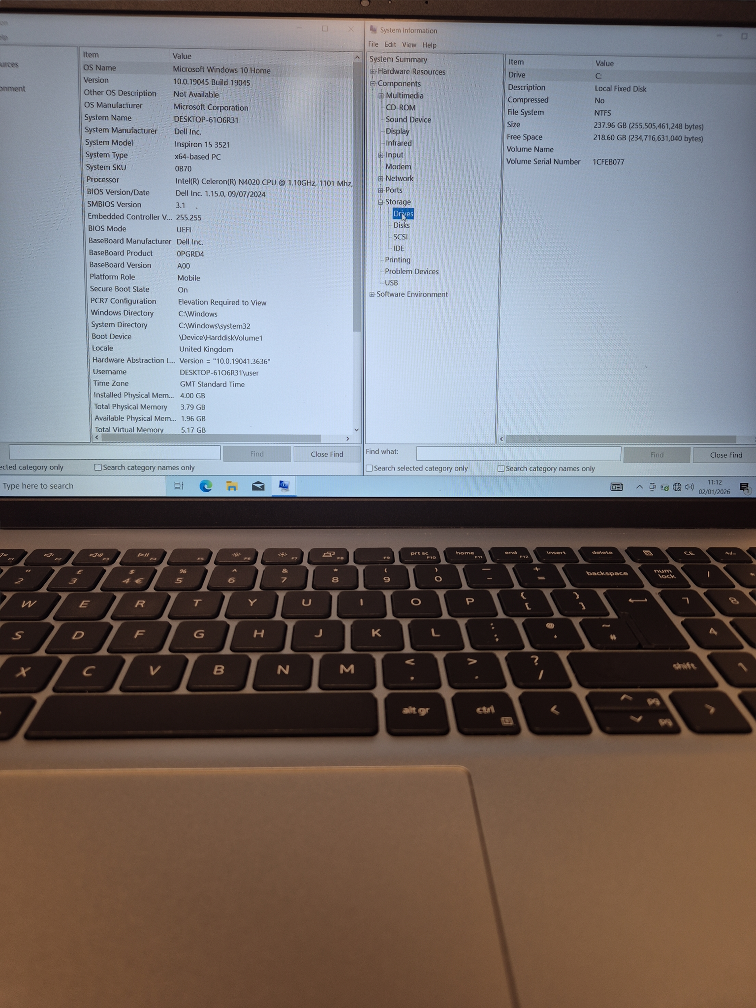 WIN 10 4GB RAM 256GB SSD INTEL CELERON N4020