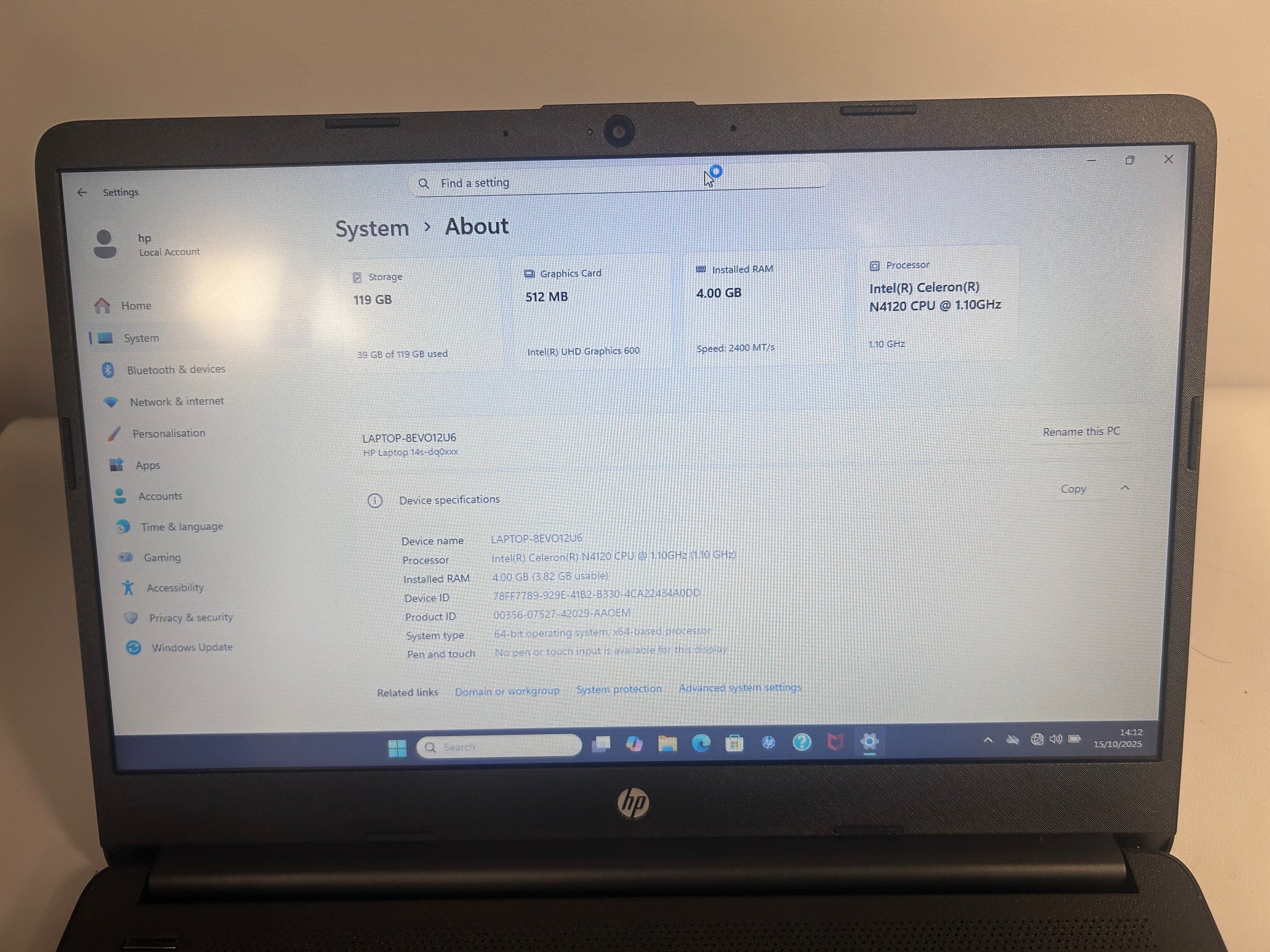 HP 14S-DO0034 Laptop In good condition with charger With windows 11 celeron n4120 1.1ghz 4gb ram 128gb ssd