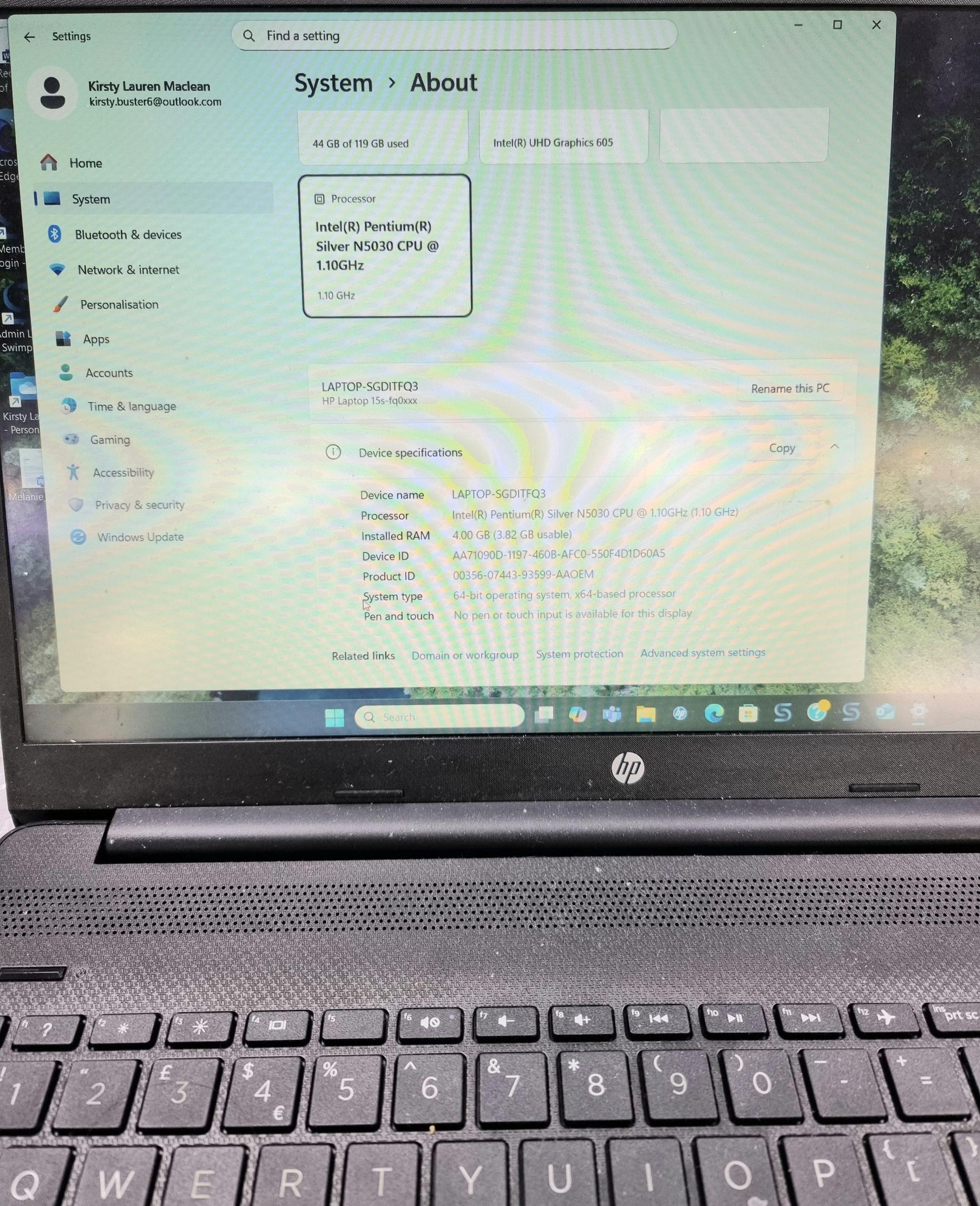 HP 15S-/N5030/4GB Ram/128GB SSD/15"/W11/ Pentium silver fully reset to factory settings comes with charger