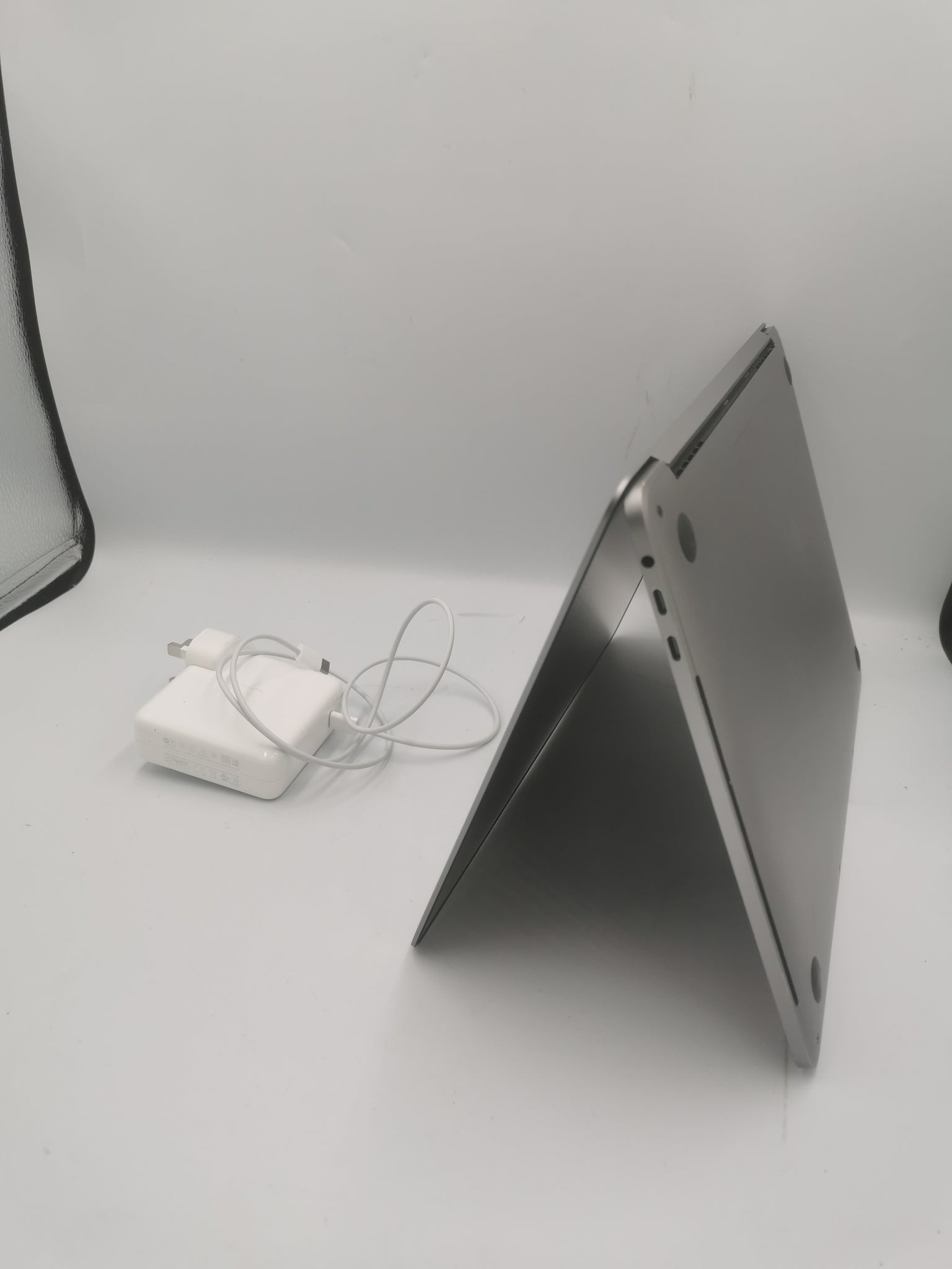 This is a used Apple MacBook Pro (13-inch, Late 2016, Four Thunderbolt 3 Ports) model identifier MacBookPro13,2, in good working condition but with cosmetic signs of use. Key Specifications: Processor: 2.9GHz Dual-Core Intel Core i5-6267U, with Turbo Boost up to 3.3GHz. Memory: 8GB of 2133MHz LPDDR3 onboard memory. Storage: 256GB PCIe-based onboard SSD. Display: 13.3-inch Retina LED-backlit display (2560x1600 resolution). Graphics: Intel Iris Graphics 550. Features: Touch Bar with integrated Touch ID sensor, four Thunderbolt 3 (USB-C) ports, Force Touch trackpad, and a backlit keyboard