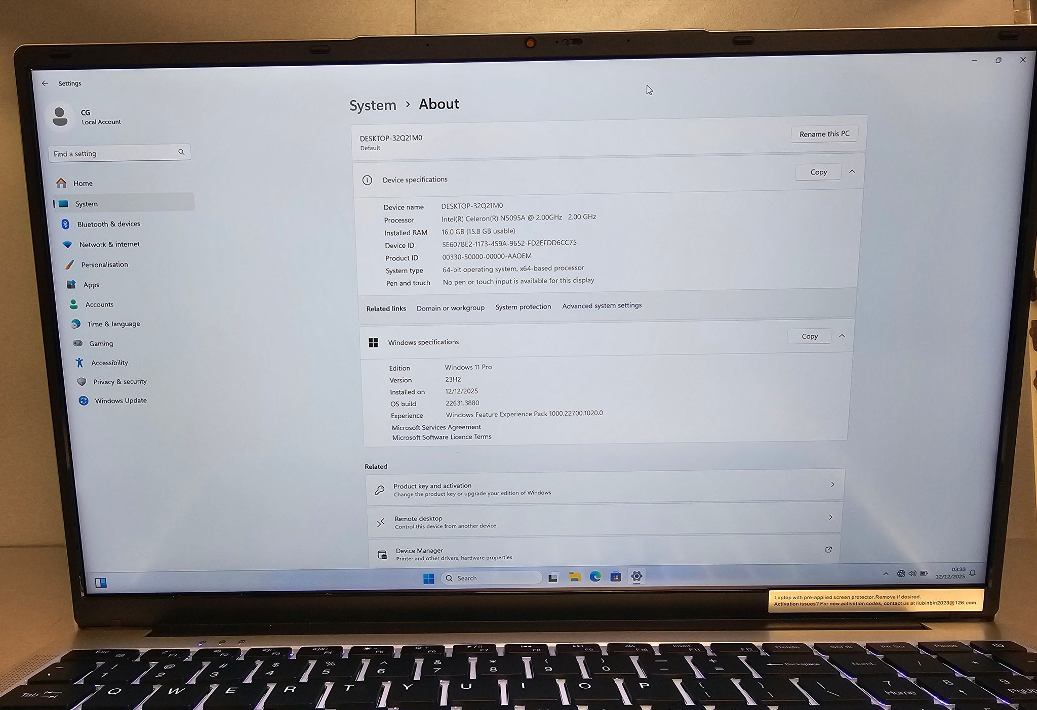 Notebook 15.6 Inch Laptop Windows 11, 16GB RAM 256GB SSD, 1080P Display Full HD Laptop PC Notebook Celeron N5095A