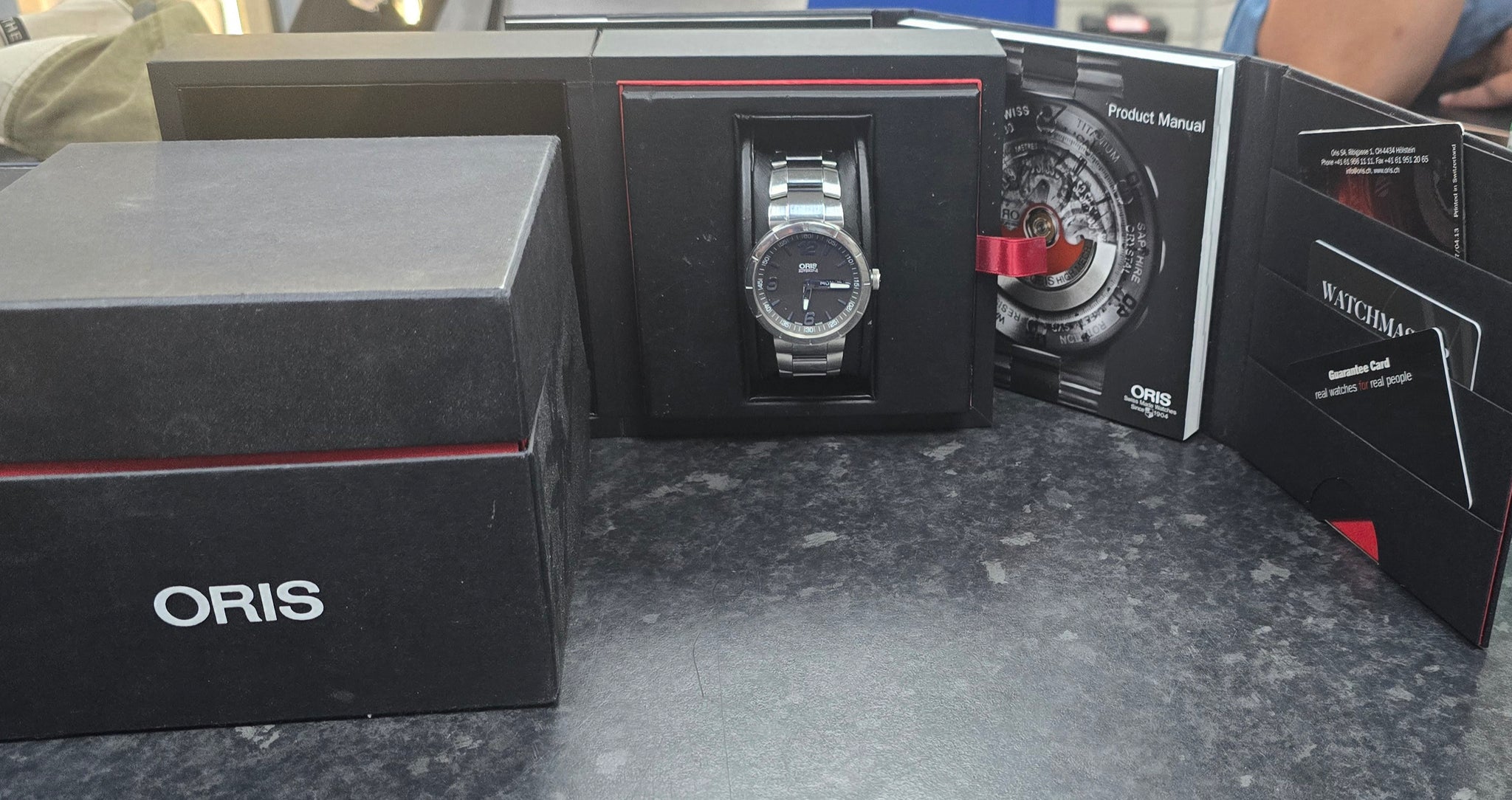 Oris TT1 Chronograph Gents Sports Timepiece 73576514163 MB Black Dial Automatic Chronograph Steel Case and Bracelet