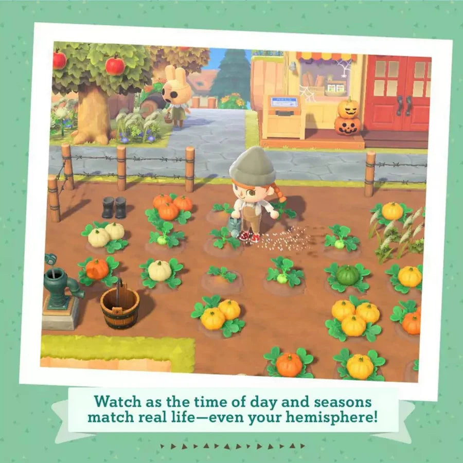 Collect resources and craft everything from creature comforts to handy tools. Embrace your green thumb as you interact with flowers and trees in new ways. Set up a homestead where the rules of what goes indoors and out no longer apply. Make friends with new arrivals, enjoy the seasons, pole-vault across rivers as you explore, and more! This new addition to the Animal Crossing series launches March 20 2020, exclusively for the Switch system. Customize your character and home, and decorate the landscape (with furniture, if you like!), as you create your very own island paradise. Experience a robust new crafting system collect materials to construct everything from furniture to tools! Enjoy a variety of relaxing activities like gardening, fishing, decorating, interacting with charming NPCs, and more, as classic Animal Crossing experiences come to life in fun new ways within the deserted-island setting. Up to eight players can reside on an island; four residents of the same island can play together simultaneously on a single system. Eight players can play together on one players island via online multiplayer or local wireless.