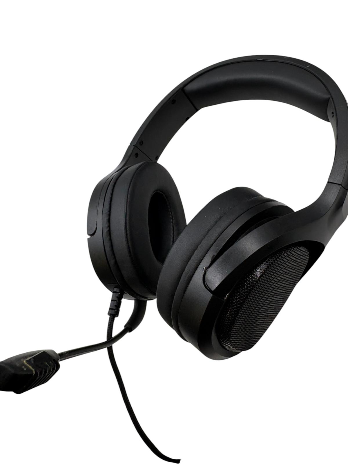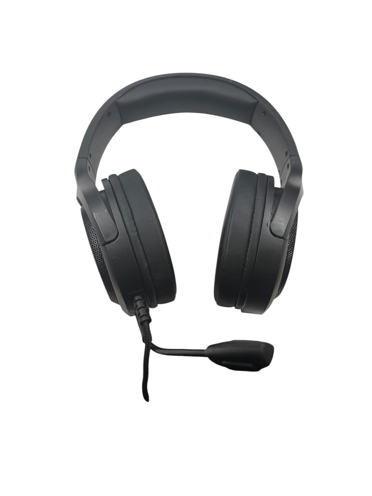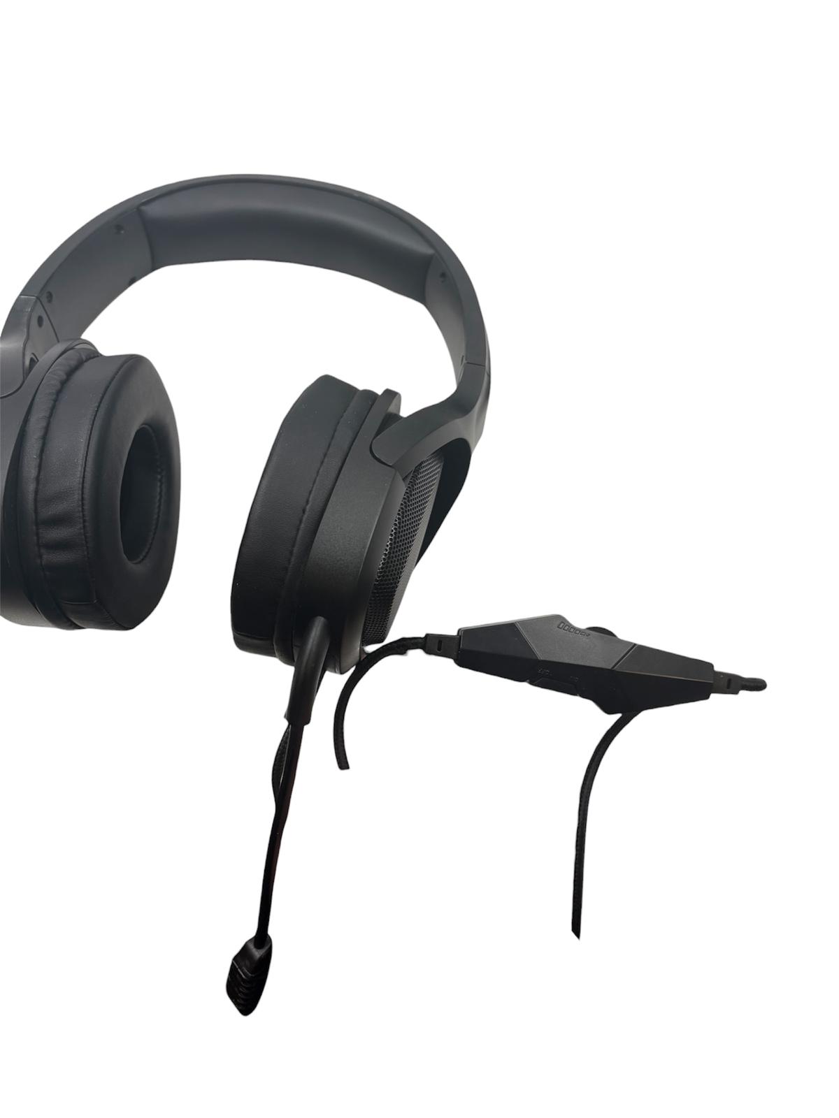 Unbranded gaming headset for PC. Built in microphone. USB and AUX connections. Volume slide and microphone switch.