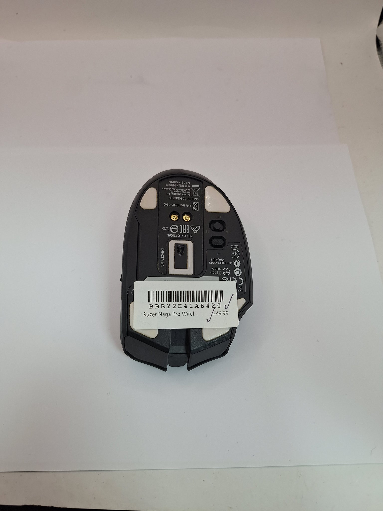 Razer Naga Pro Wireless Optical Gaming Mouse, B (All Accessories) The Razer Naga Pro is a wireless optical gaming mouse with up to 20,000 DPI, three interchangeable side plates for different gaming genres (MMO, Battle Royale, FPS), and multiple connectivity options: Razer™ HyperSpeed Wireless, Bluetooth, and wired via USB. It features Razer™ Optical Mouse Switches, Razer Chroma RGB lighting, and an ergonomic, right-hand design with a 150-hour battery life