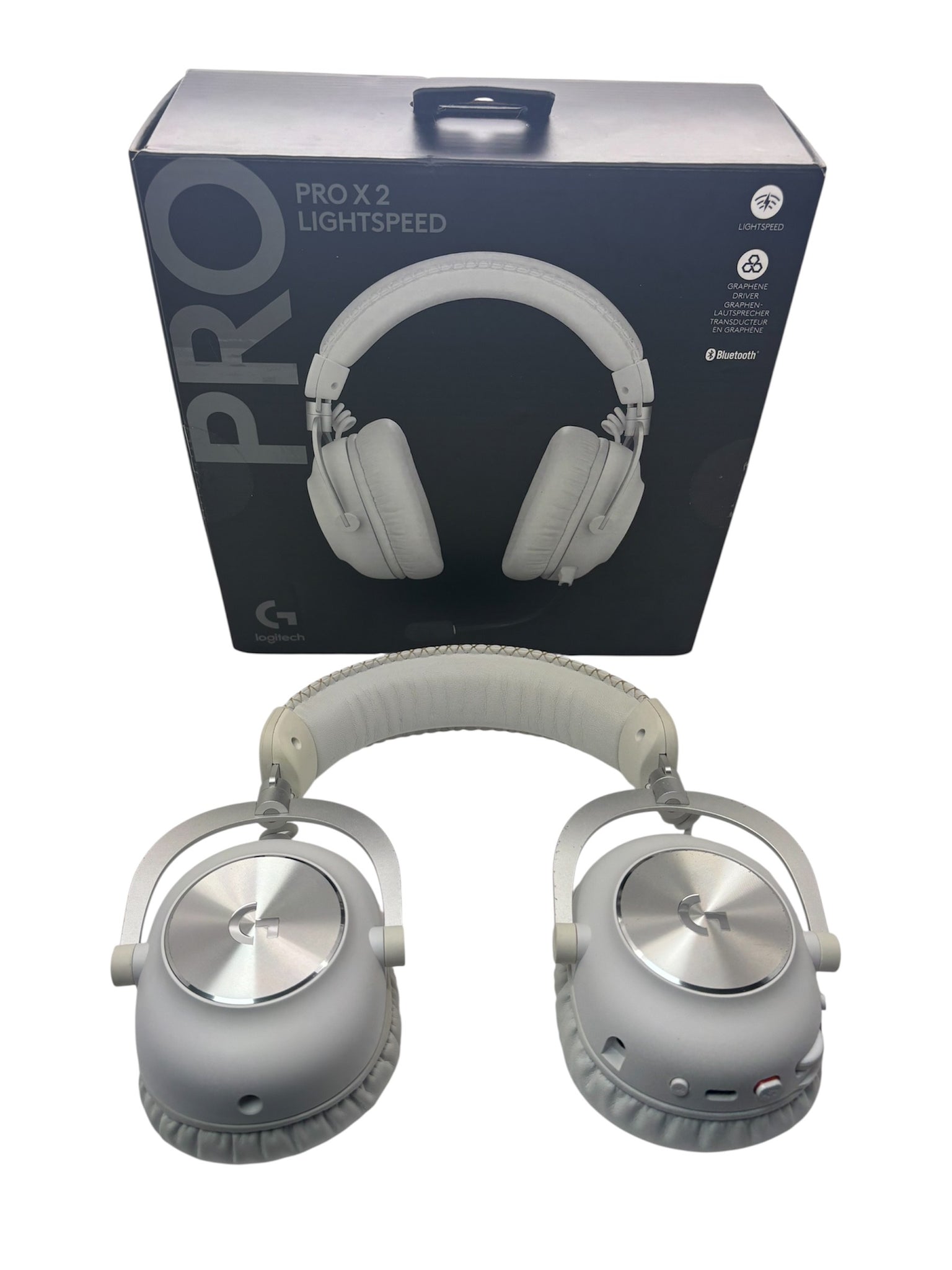 Logitech PRO X 2 Wireless Gaming Headset Designed for Esports-Level Performance 50 mm Graphene Drivers – Ultra-sensitive drivers deliver precise audio, letting you hear every footstep and detail. LIGHTSPEED Wireless – Rock-solid connection for seamless, cable-free gaming. Lightweight & Comfortable – Cushioned earcups and a durable yet lightweight build for extended play sessions. Long Battery Life – Enjoy up to 50 hours of use on a single charge. Good to Know Durable Construction – Made with aluminium and steel, plus a rotating hinge for a snug fit. Noise-Cancelling Boom Mic – Features Blue Vo! ce technology for crystal-clear communication. Multi-Platform Compatibility – Works with PC, PlayStation, Switch, and more via LIGHTSPEED, Bluetooth, USB, or 3.5 mm jack. 30 m Wireless Range – Stay connected even when stepping away from your setup. On-Ear Controls – Quickly mute audio when you need to talk in the real world.