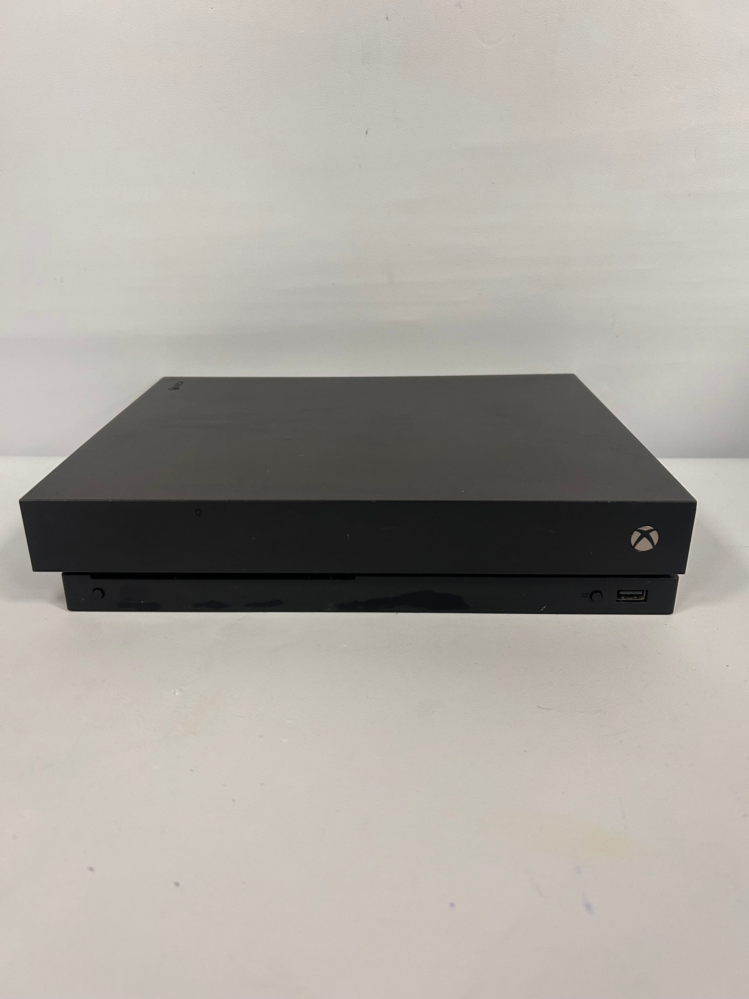 Microsoft Xbox One X 1TB Package In good condition with leads, controller and game shown