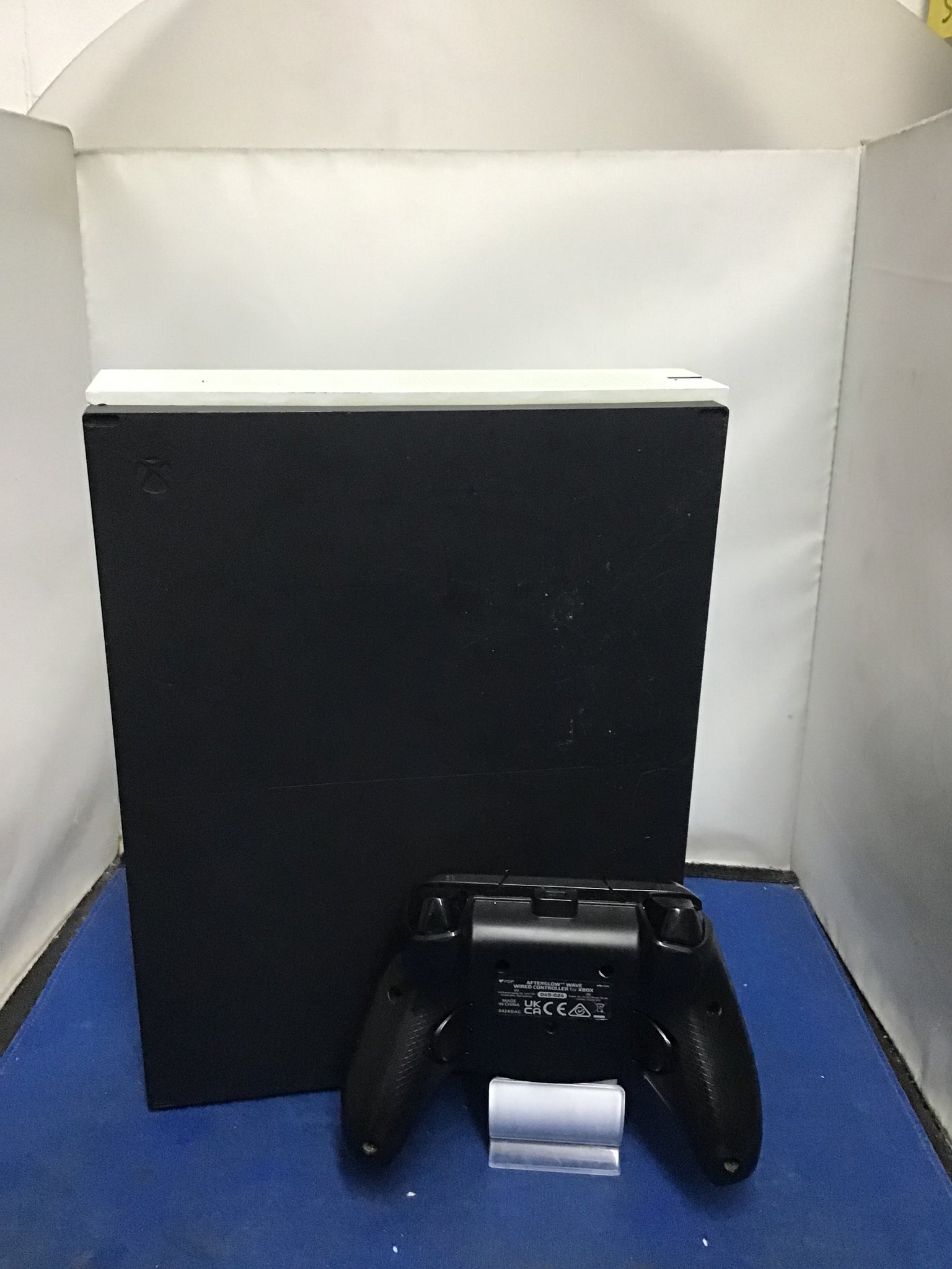 We have here a white Xbox One S. it comes with 3rd party controller and power cables. Console has been tested and whipped cleaned and ready to be used