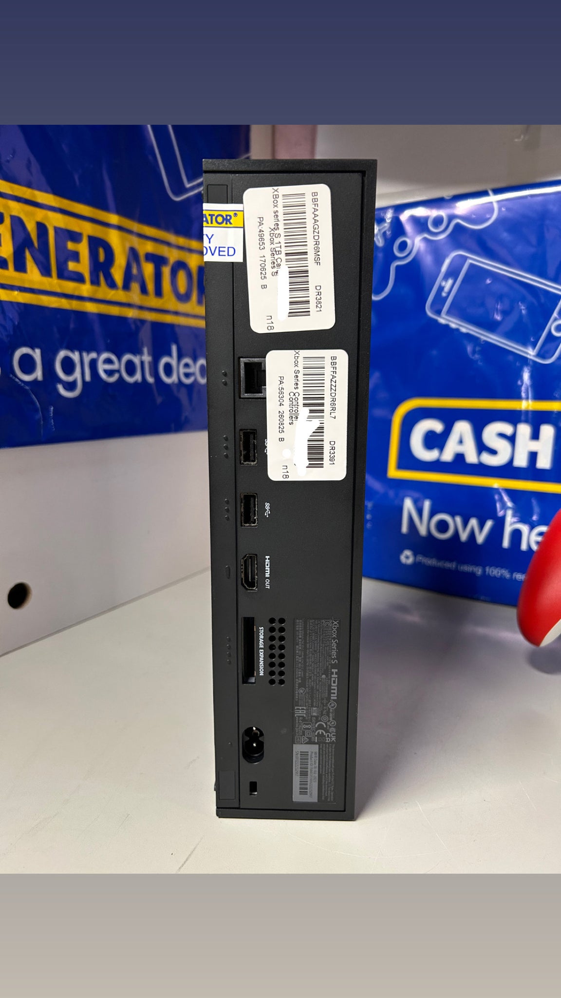 Xbox Series X console in a sleek black with 1TB SSD. comes unboxed in perfect working order with a red and white series Controller. comes with power and HDMI cables.