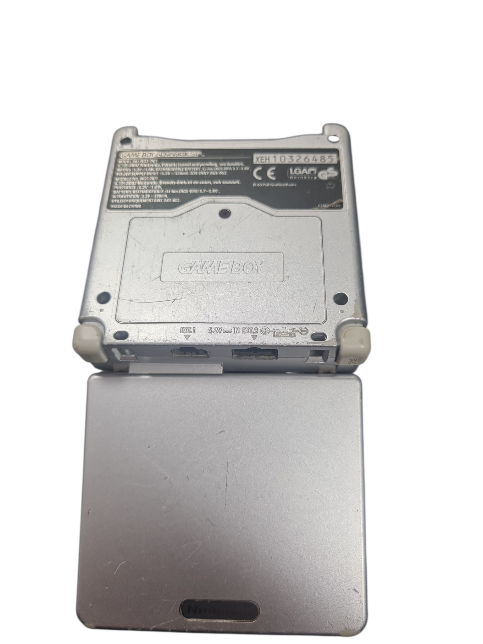 GAME BOY ADVANCE SP AGS-001 CONSOLE, COOL SILVER, UNBOXED, CHARGER INCLUDED
