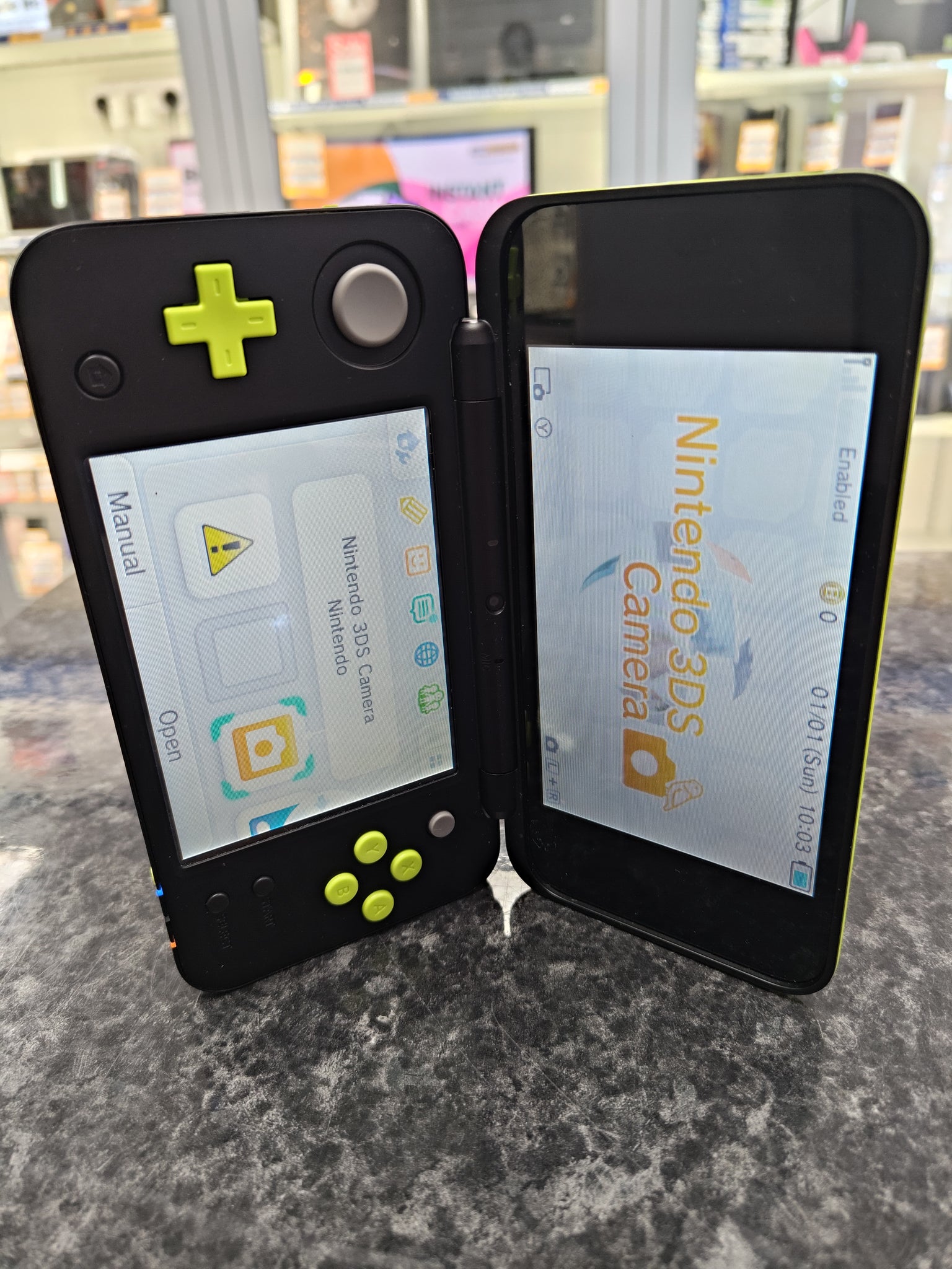 NEW 2DS XL Console, w/AC Adapter, Black & Lime Green