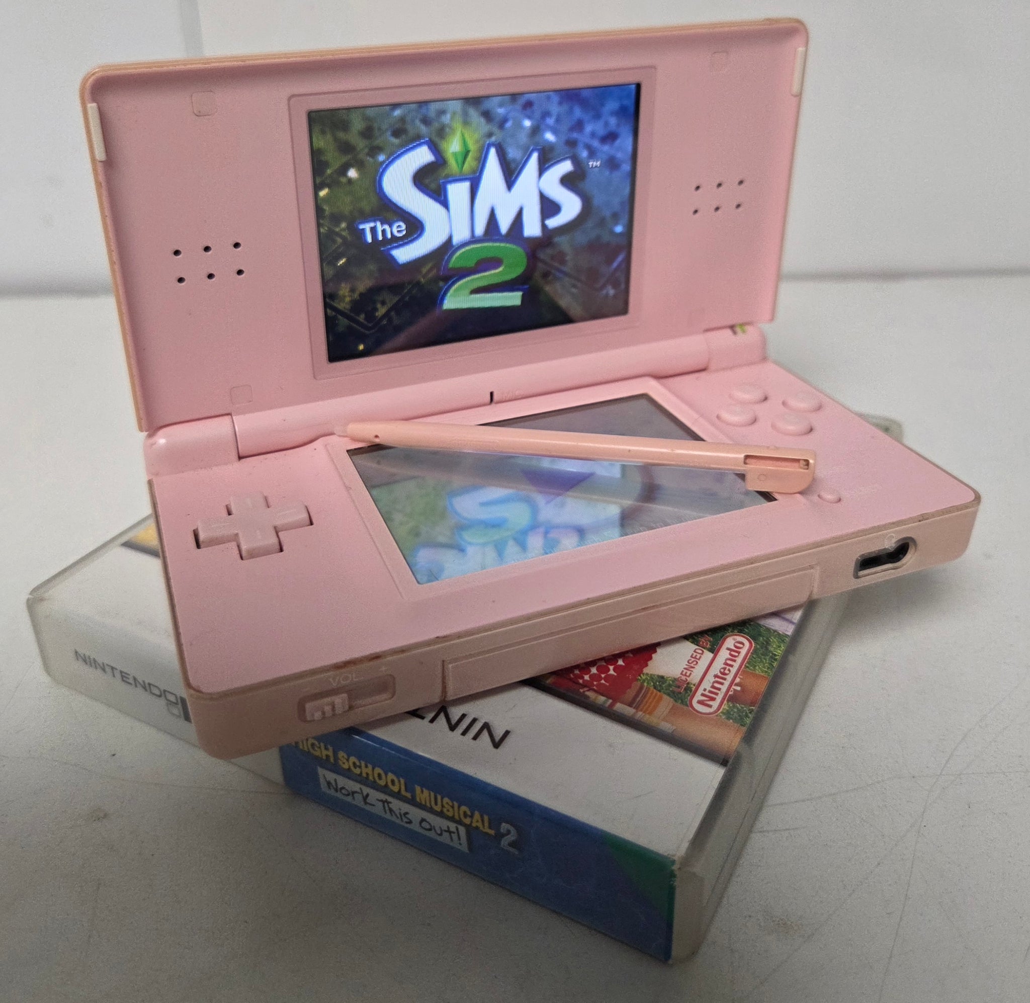 Nintendo DS Lite Pink Console & 2 Games ( 1 Unboxed)