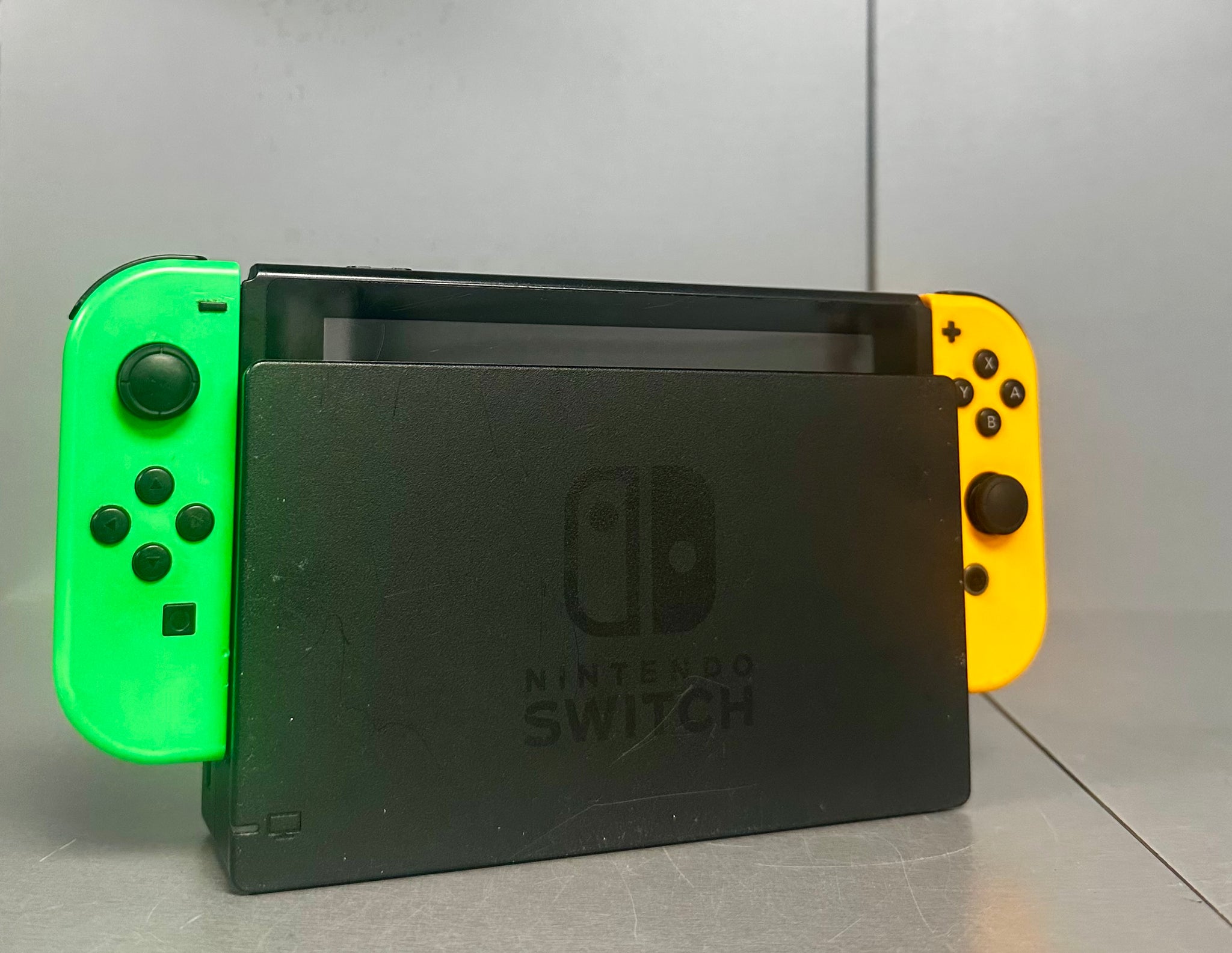 Item is good working order. Item is in average condition screen is heavily scratched. Item is unboxed Does include power lead, hdmi. dock station, joycons