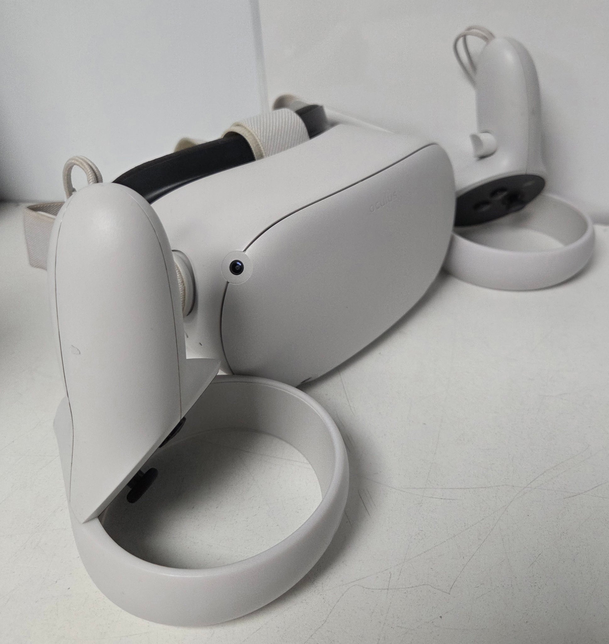 Meta Quest 2 is the all-in-one system that truly sets you free to explore in VR. With no wires or cables, simply put on the headset, draw out your play space, and jump into fully-immersive, imagination- defying worlds. A fast processor and immersive graphics keep your experience smooth and seamless, even as high-speed action unfolds around you. 3D positional audio, hand tracking and easy-to-use controllers make virtual worlds feel real. A built-in battery lets you explore further for longer as you discover a growing library of over 500 titles across gaming, social/multiplayer, fitness and entertainment. Incredible social spaces and multiplayer arenas let you meet, play and build communities with people from all over the world. Travel universes in blockbuster fantasies, scare yourself witless in horror adventures, or collaborate with colleagues in innovative workspaces. Sit front row with friends and family at movies and live events, find your new workout crew, or join quests with fellow adventurers. And you can connect your VR headset to a gaming- compatible computer (PC and cable sold separately). Let your friends and family into your VR world by casting your experience to compatible TVs and other screens. And anywhere you go in the real world, you can take your lightweight, portable Quest 2 with you. *Requires mobile device, wi-fi and companion app for setup. Account registration required. See child safety guidance online; Accounts for 10+. Certain apps, games and experiences may be suitable for a more mature audience.