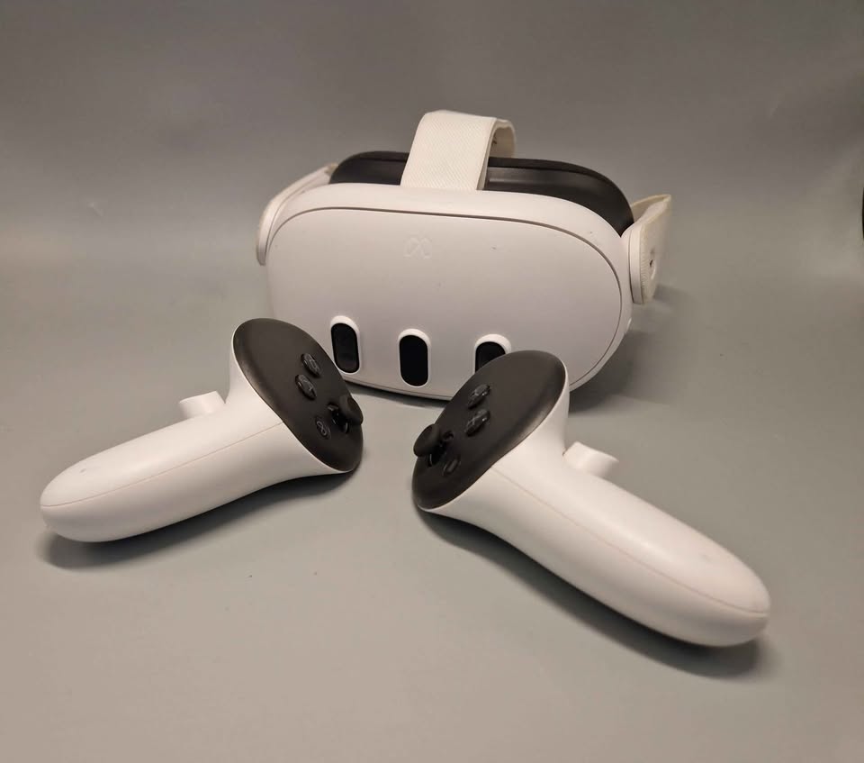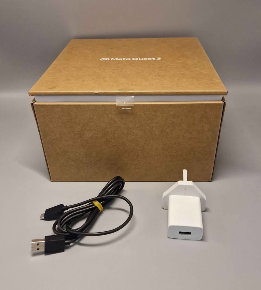 Meta Quest 3 VR Headset (With Controllers) - 512GB perfect working condition, good physical condition, has some grime on the straps but otherwise good Specifications Manufacturer: Meta Grade: B Model Name: Quest 3 Storage: 512GB Headset Type: VR Kit Product Description Blend the virtual and physical with breakthrough mixed reality Bring virtual elements into your physical space with natural interactions. High-fidelity, full-colour. Pass-through keeps your surroundings in sight, while stereoscopic depth perception allows you to interact with characters or objects in the room around you. Surround yourself in 3D sound With enhanced sound clarity and an audio range that's 40 percent louder than Oculus Quest 2, all your favourite apps become more immersive. Stream films by creating the ultimate home cinema within your headset, or play games backed by a soundtrack of booming bass that brings you straight into the action. Dazzling graphics Delve deeper with lifelike experiences - thanks to 4K plus Infinite Display resolution. You can also see more with an increased field of view (104 degree horizontal and 96 degree vertical) that extends your peripheral vision within virtual worlds. Touch plus controllers for experiences you can feel Feel like you're actually swinging a saber or casting a fishing line with TruTouch haptics that let you react to every experience as if you're physically there. Redesigned to help you find the perfect fit Discover the setup that works best for you, including options that let you wear your headset over glasses - or accommodate different hairstyles and face shapes. Technical details: 4K+ Infinite Display, 2064 x 2208 resolution per eye with 25PPD and 1218 PPI Pancake lens provides a slimmer optic profile 110 degrees horizontal and 96 degrees vertical field of view Integrated stereo speakers with 3D spatial audio Works with Oculus Link and Air Link on PC 2 RGB Color cameras and depth projector 4 IR cameras and 2 RGB cameras Supports 90 / 120 Hz refresh rate Snapdragon XR2 Gen 2 Processor 512GB internal memory 8GB RAM Wi-Fi 6E External LED 515 g