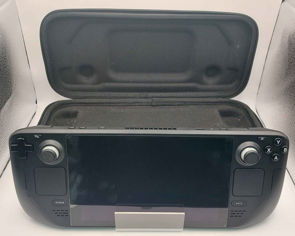 All-in-one portable PC gaming Steam Deck brings the Steam games and features you love to a convenient form factor that you can take wherever you go. Versatile You can connect to peripherals, throw the picture onto a big screen, and do all the other PC things you'd expect. Steam, without compromises All of the features you know and love are available to your fingers and thumb sticks. Technical Details: Processor Zen 2 4c/8t, 2.4-3.5GHz (up to 448 GFlops FP32) CPU 8 RDNA 2 CUs, 1.0-1.6GHz (up to 1.6 TFlops FP32) GPU RAM 16 GB RAM Storage 512 GB microSD UHS-I, SD, SDXC and SDHC supports Display 7 Inch 1280 x 800px Display IPS LCD 60Hz refresh rate 400 nits brightness Touch screen Connectivity Bluetooth v5.0 Dual-band Wi-Fi radio, 2.4GHz and 5GHz, 2 x 2 MIMO, IEEE 802.11a/b/g/n/ac Expansion 3 x USB-A 3.1 Port, ethernet, displayPort 1.4 and HDMI 2.0 General Steam OS 3.0 (Arch-based) Ambient light sensor A B X Y buttons, D-pad, L and R analog triggers, L and R bumpers, View and Menu buttons, 4 x assignable grip buttons gamepad controls 2 x full-size analog sticks with capacitive touch HD haptics 2 x 32.5mm square trackpads Dual microphone array 3.5mm headphone jack 298 x 117 x 49mm 669 g