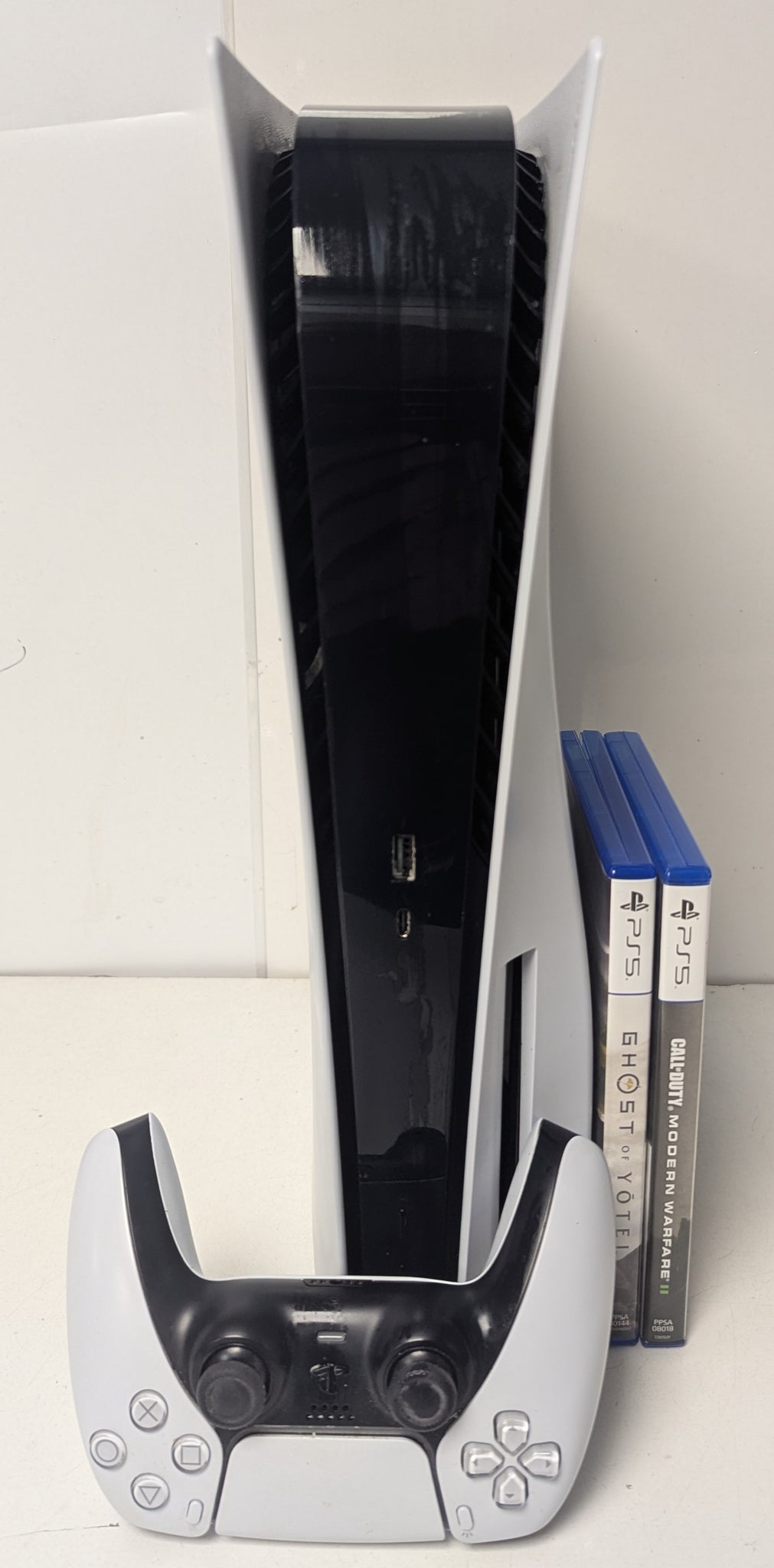 Ultra-High Speed SSD Maximize your play sessions with near instant load times for installed PS5 games. Integrated I/O The custom integration of the PS5 console's systems lets creators pull data from the SSD so quickly that they can design games in ways never before possible. Ray Tracing Immerse yourself in worlds with a new level of realism as rays of light are individually simulated, creating true-to-life shadows and reflections in supported PS5 games. 4K-TV Gaming Play your favourite PS5 games on your stunning 4K TV. Up to 120fps with 120Hz Output Enjoy smooth and fluid high frame rate gameplay at up to 120fps for compatible games, with support for 120Hz output on 4K displays. HDR Technology With an HDR TV, supported PS5 games display an unbelievably vibrant and lifelike range of colours. 8K Output PS5 consoles support 8K Output, so you can play games on your 4320p resolution display. Tempest 3D Audio Tech Immerse yourself in soundscapes where it feels as if the sound comes from every direction. Through your headphones or TV speakers your surroundings truly come alive with Tempest 3D Audio Tech in supported games Haptic Feedback Experience haptic feedback via the Dual Sense wireless controller in select PS5 titles and feel the effects and impact of your in-game actions through dynamic sensory feedback. Adaptive Triggers Get to grips with immersive adaptive triggers, featuring dynamic resistance levels which simulate the physical impact of in-game activities in select PS5 games.